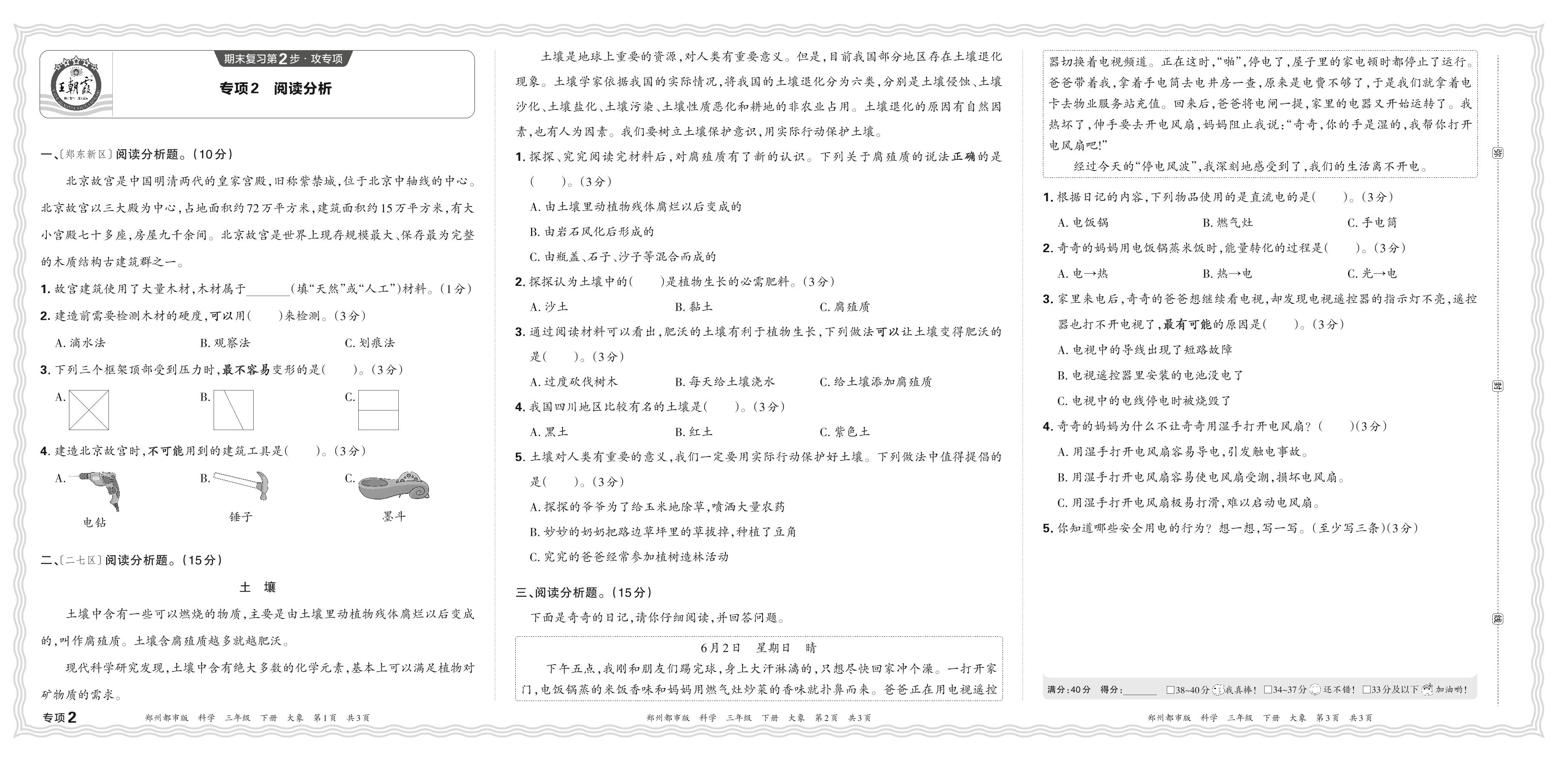 2024春下册三年级科学大象版 期末专项卷郑州版·阅读分析【2】