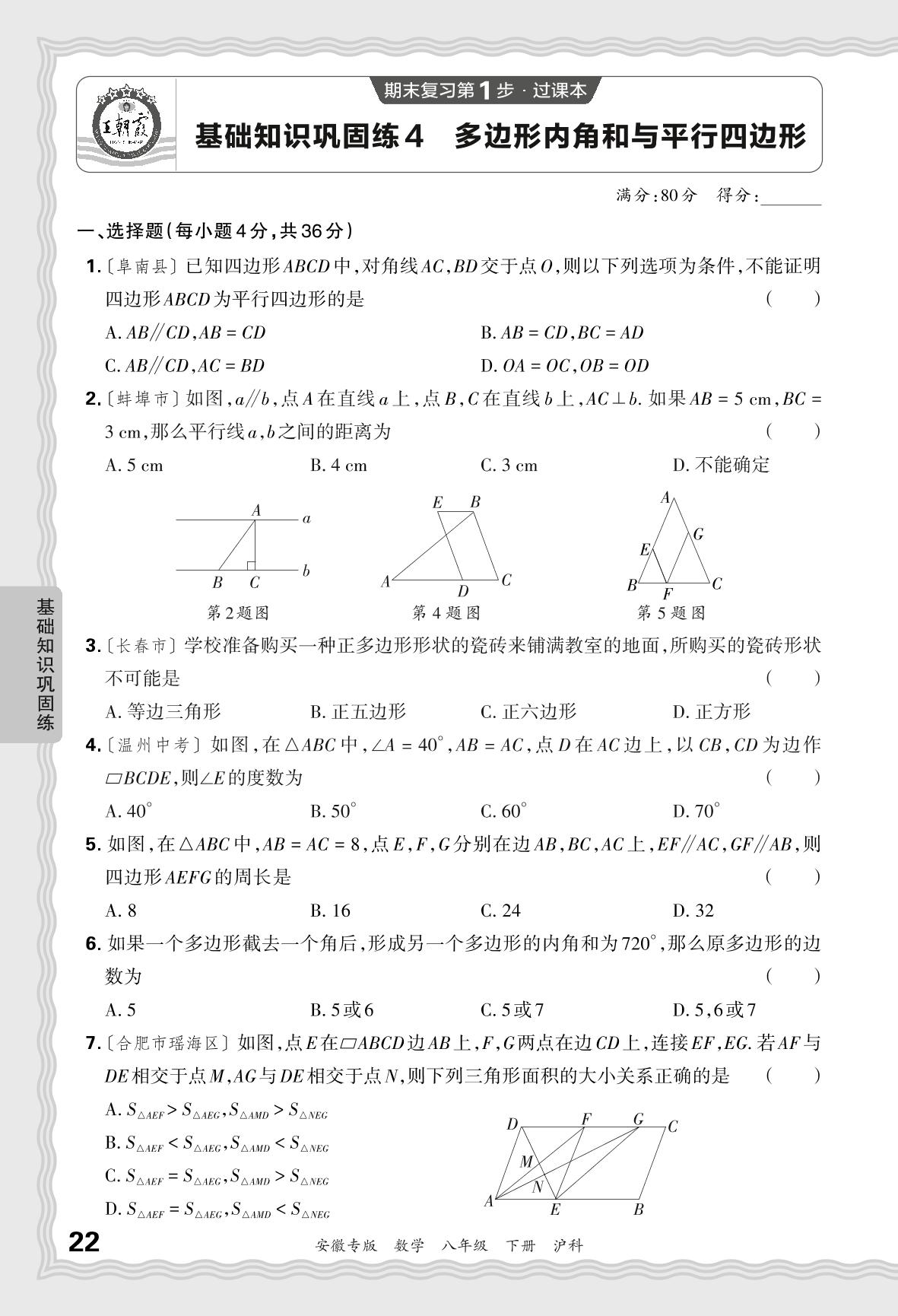 2024春下册八年级数学沪科版 期末过课本安徽版·基础知识巩固练 多边形内角和与平行四边形【4】