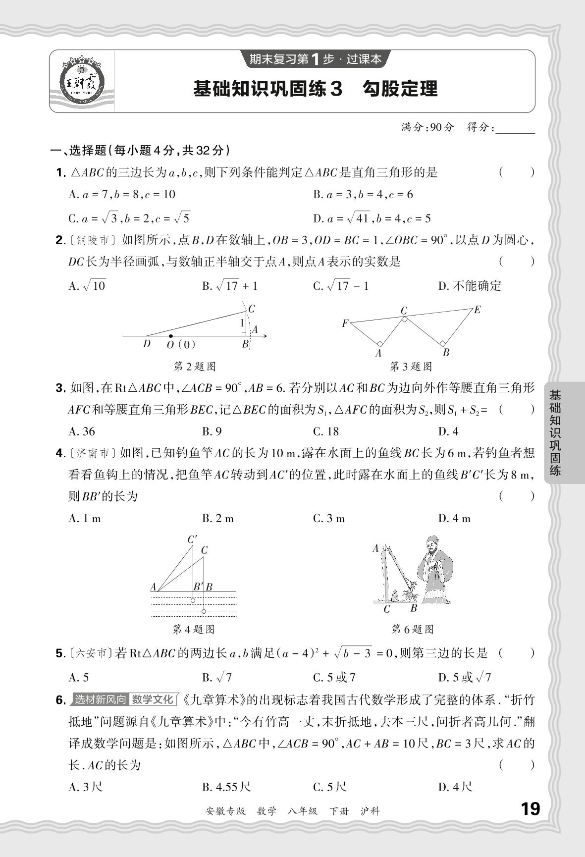 2024春下册八年级数学沪科版 期末过课本安徽版·基础知识巩固练 勾股定理【3】