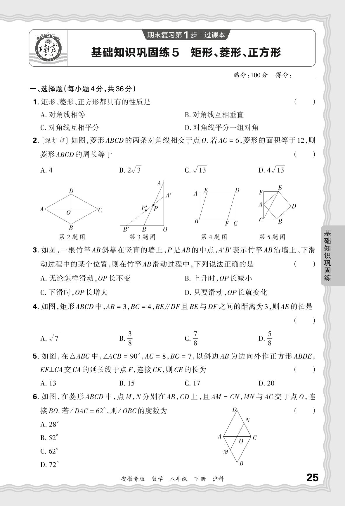 2024春下册八年级数学沪科版 期末过课本安徽版·基础知识巩固练 矩形、菱形、正方形【5】