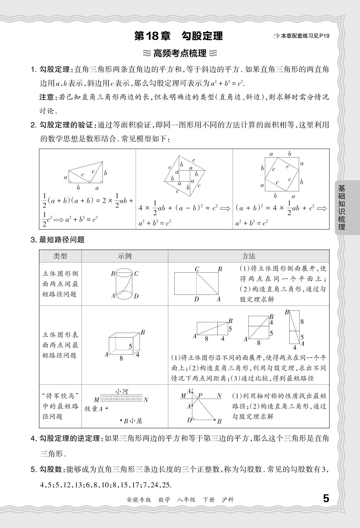 2024春下册八年级数学沪科版 期末过课本安徽版·基础知识梳理 第18章 勾股定理
