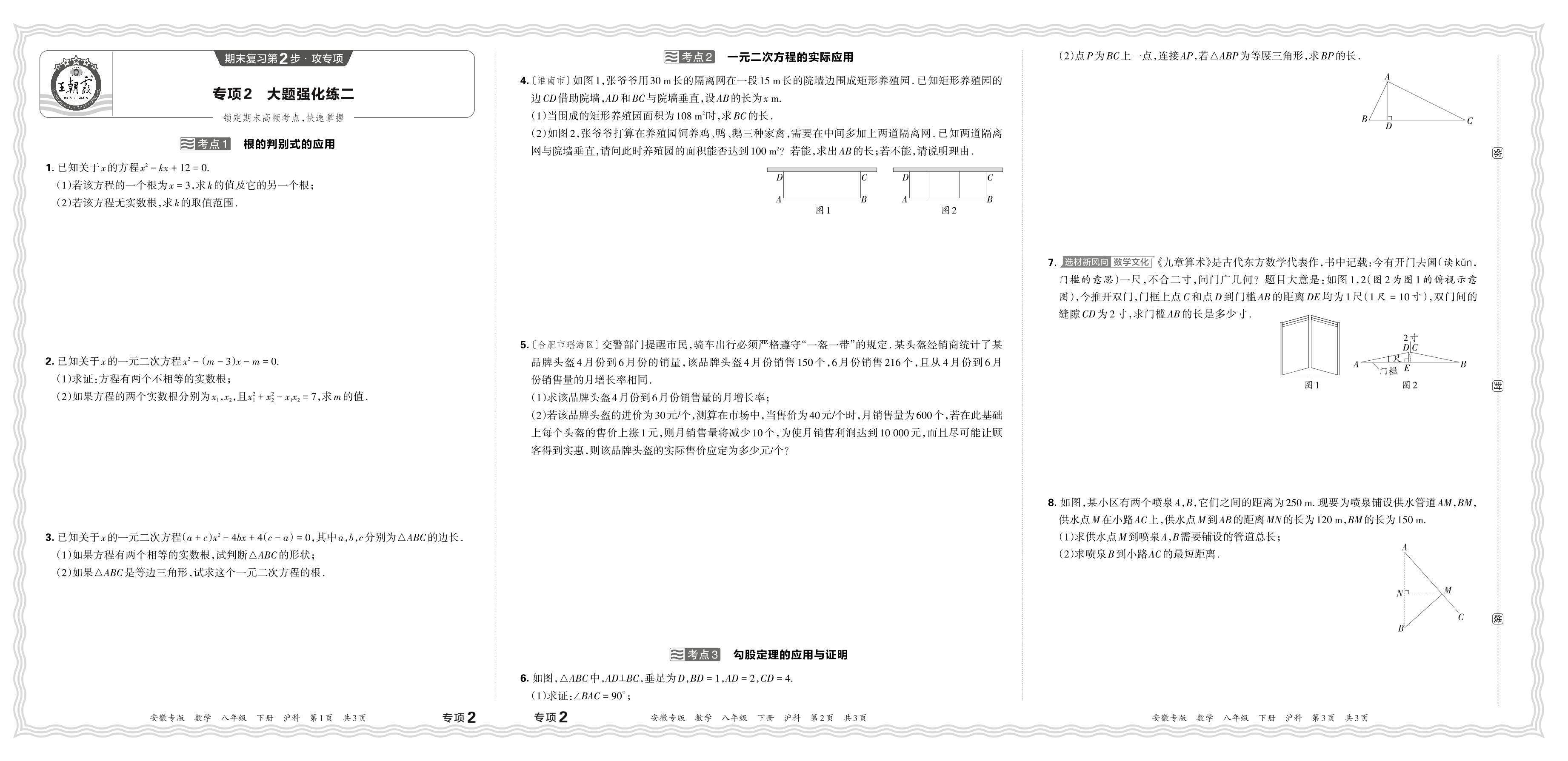 2024春下册八年级数学沪科版 期末专项卷安徽版·大题强化练二