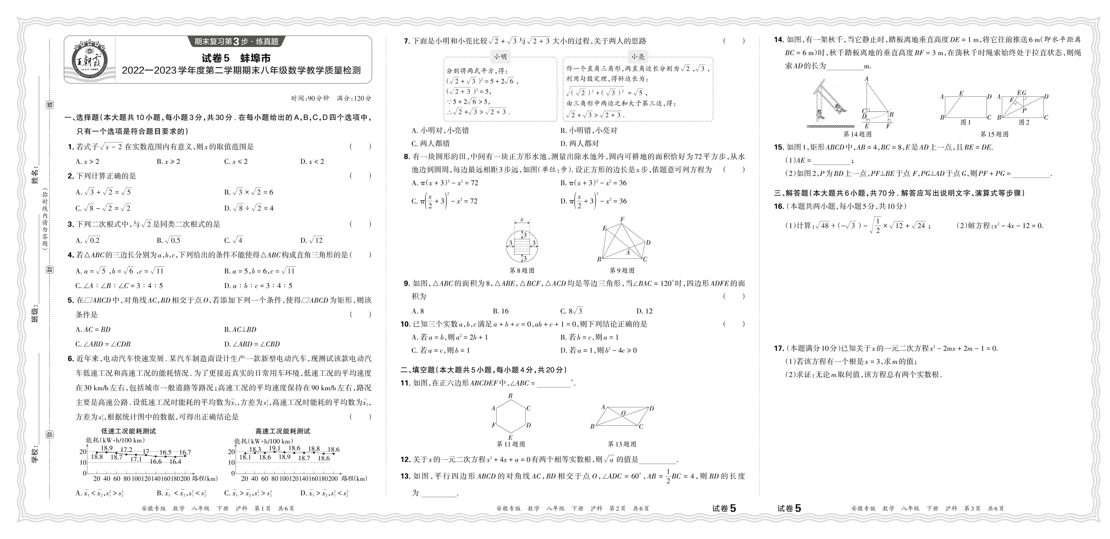 安徽省蚌埠市2022-2023学年度第二学期期末八年级数学教学质量检测(沪科版)【5】