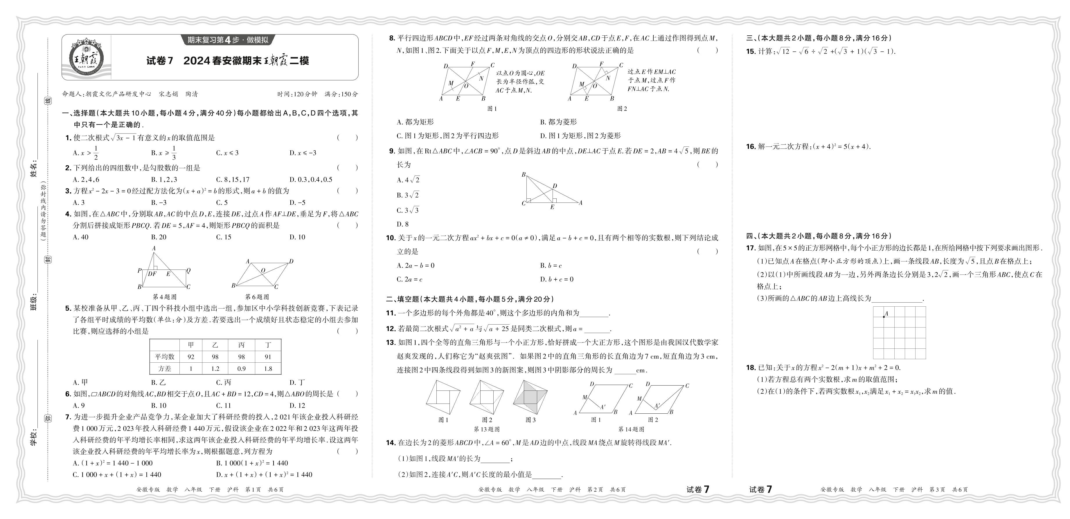 2024春下册八年级数学沪科版 安徽期末王朝霞二模