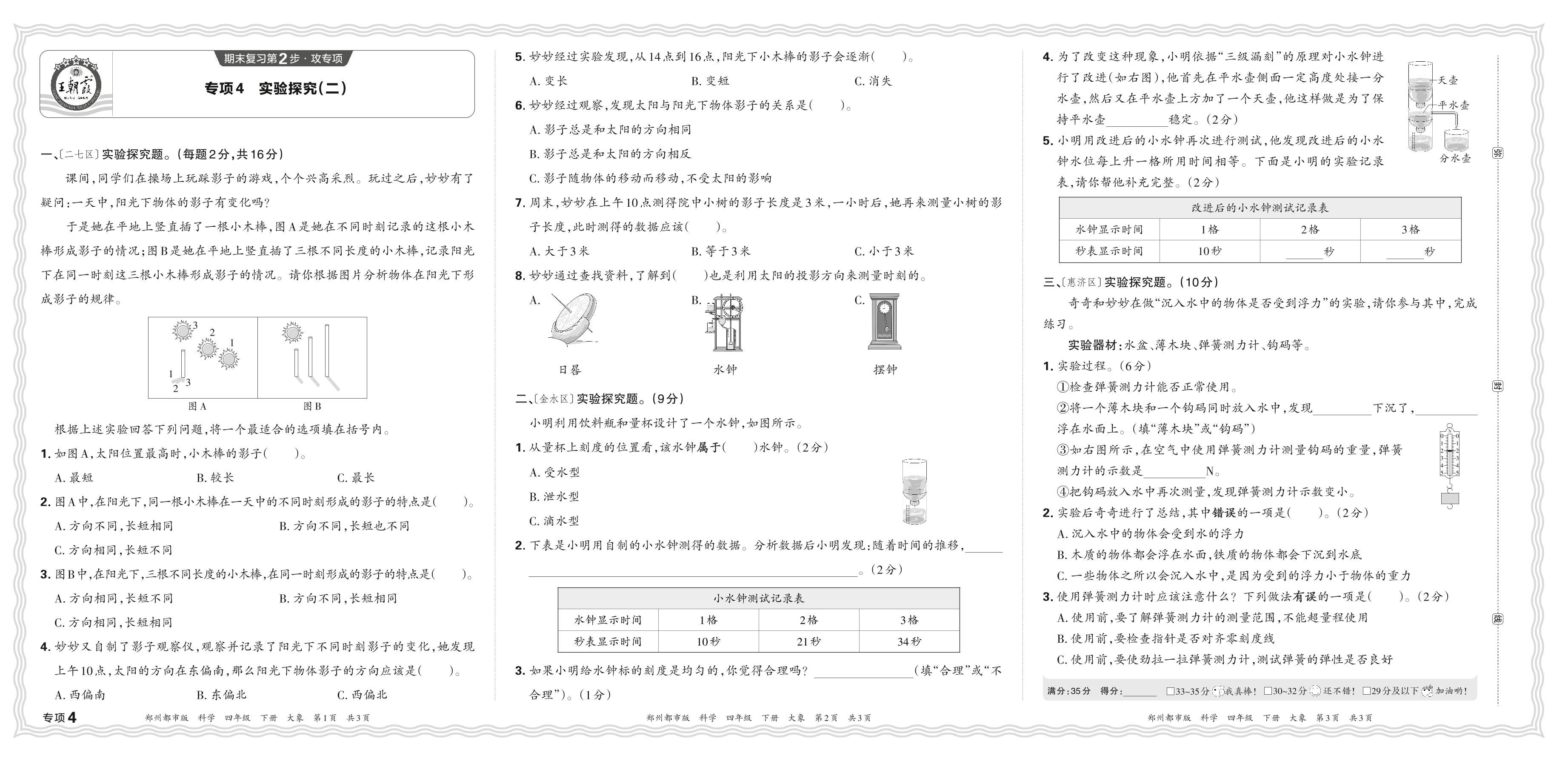 2024春下册四年级科学大象版 期末专项卷郑州版·实验探究(二)【4】