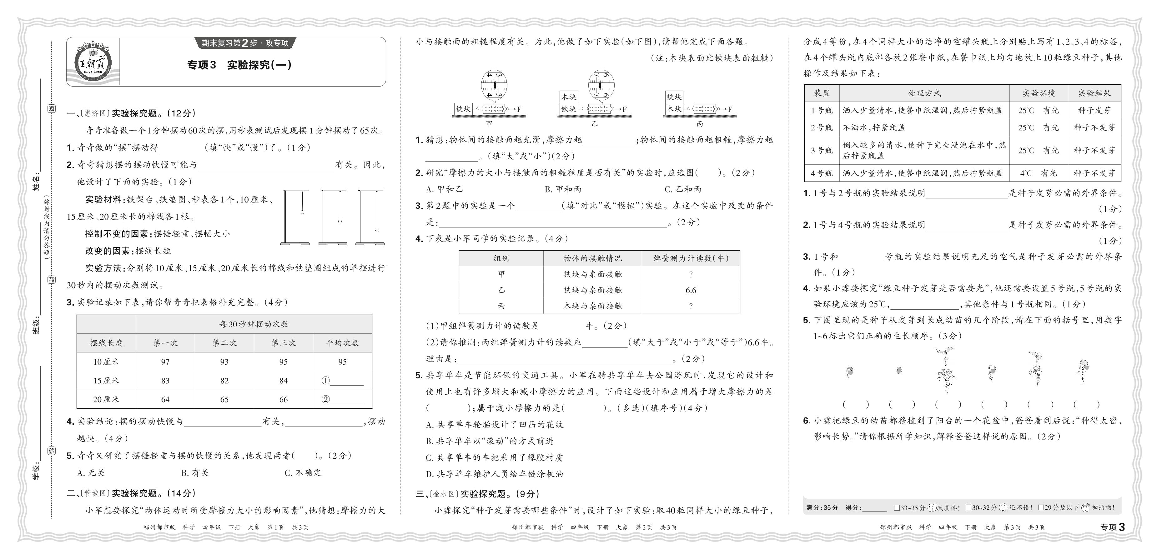 2024春下册四年级科学大象版 期末专项卷郑州版·实验探究(一)【3】