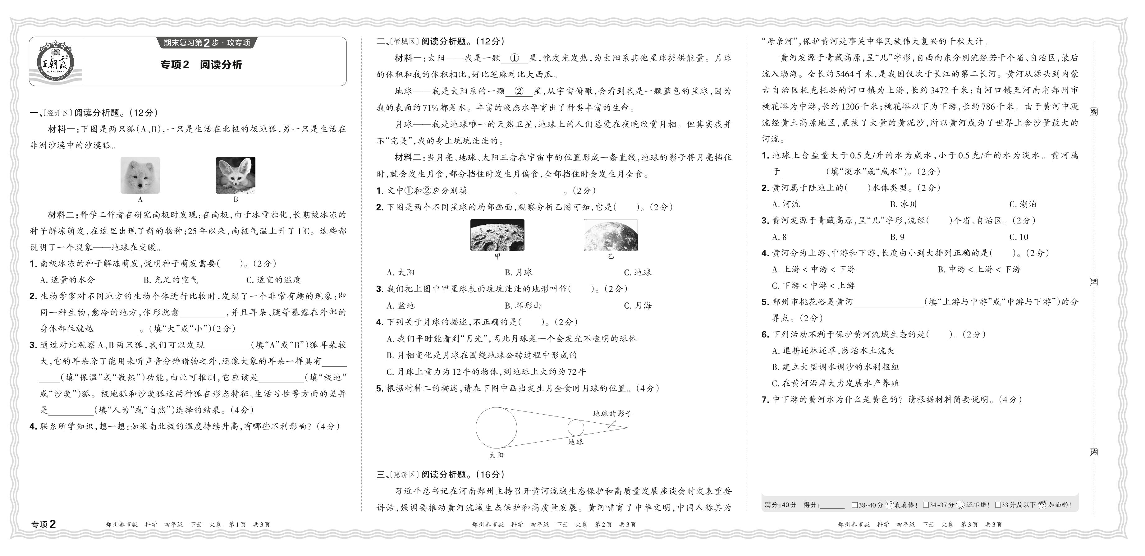 2024春下册四年级科学大象版 期末专项卷郑州版·阅读分析【2】