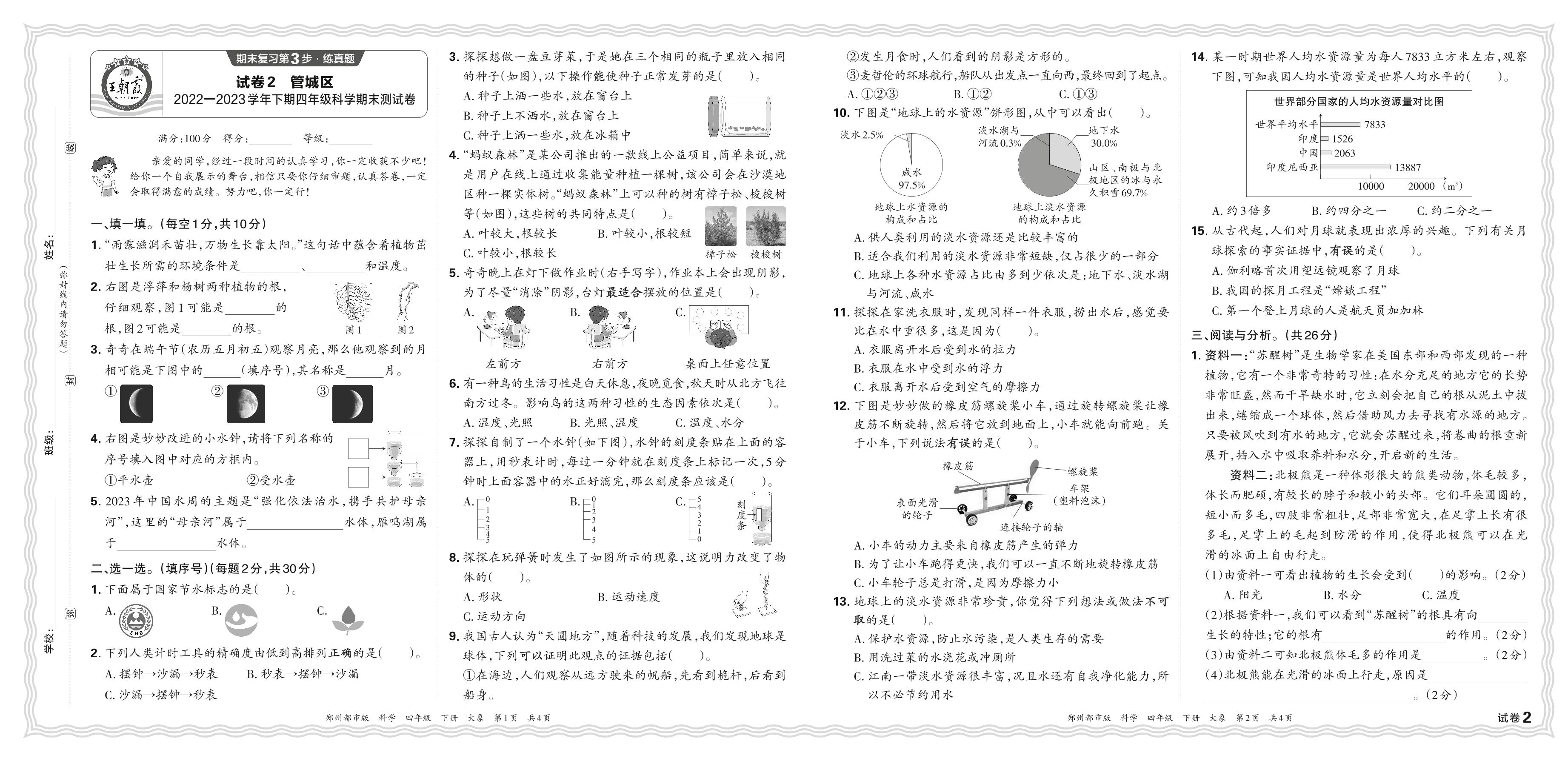 河南省郑州市管城区2022—2023学年下册四年级科学期末测试卷(大象版)【2】