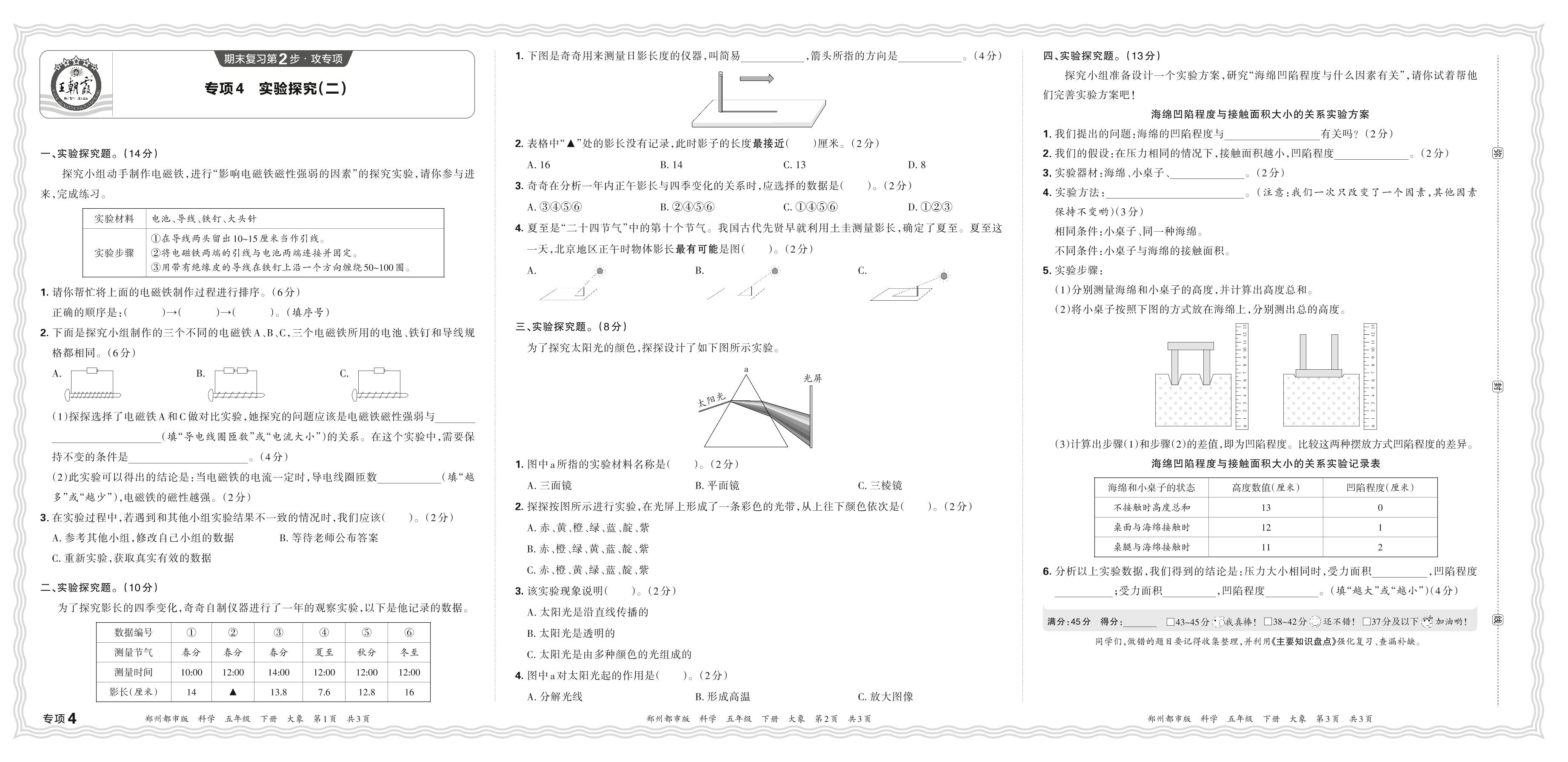 2024春下册五年级科学大象版 期末专项卷郑州版·实验探究(二)【4】