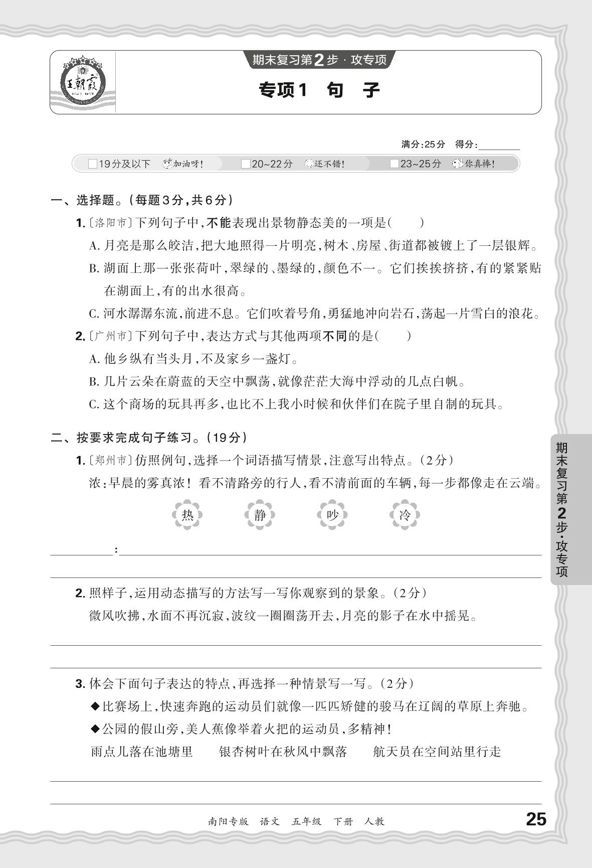 2024春下册五年级语文人教版 期末专项卷南阳版·句子【1】