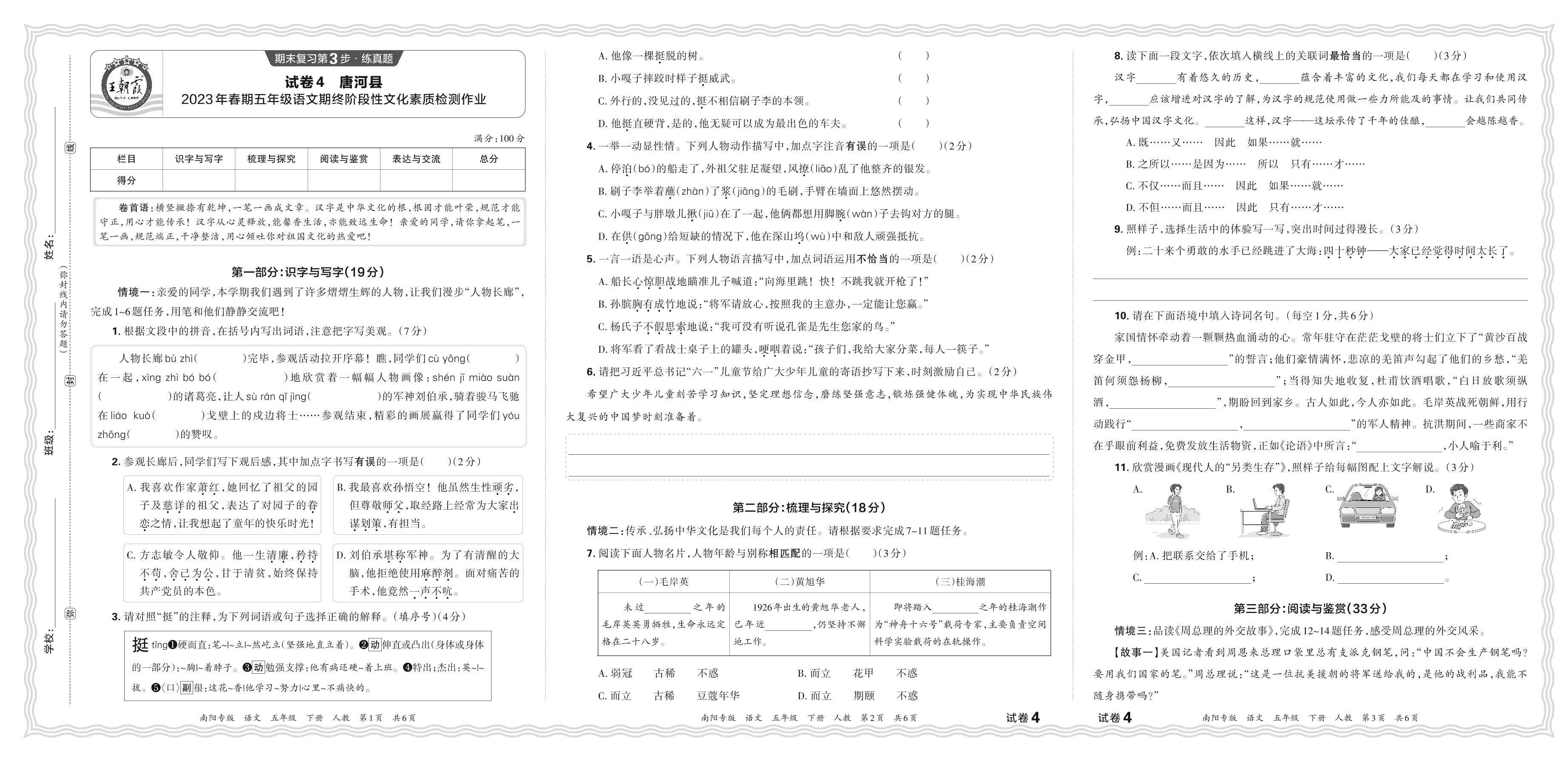 五年级语文人教版下册期末卷