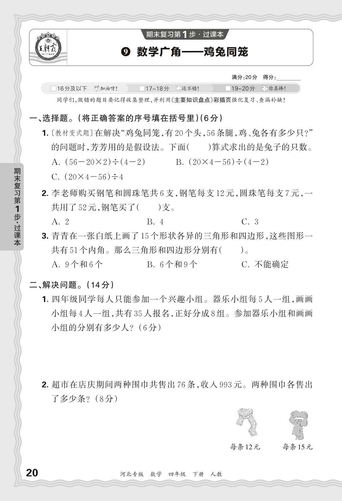 2024春下册四年级数学人教版 期末过课本河北版·数学广角——鸡兔同笼【9】