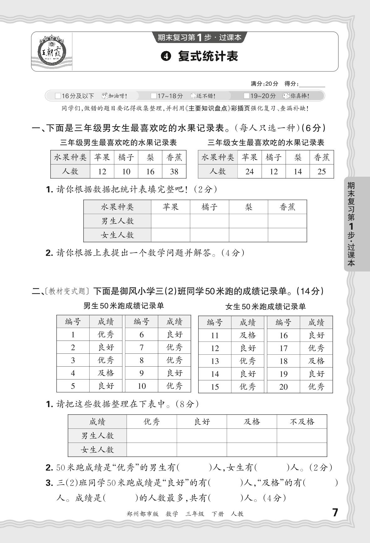 2024春下册三年级数学人教版 期末过课本郑州版·复式统计表【4】