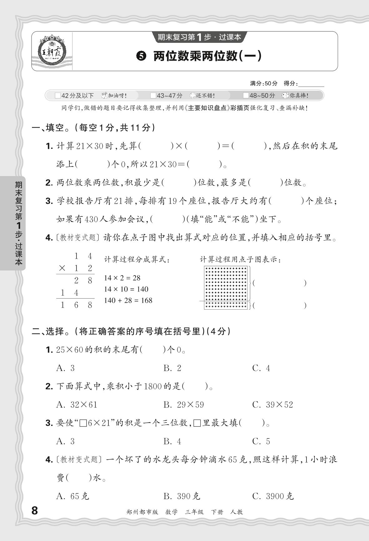 2024春下册三年级数学人教版 期末过课本郑州版·两位数乘两位数(一)【5】