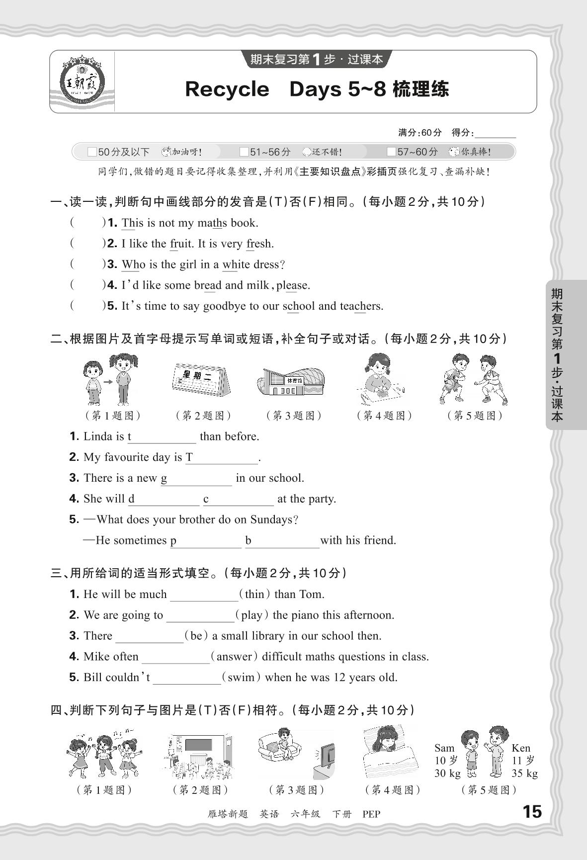 2024春下册六年级英语人教PEP版 期末过课本西安版·Recycle Days 5~8 基础知识梳理练
