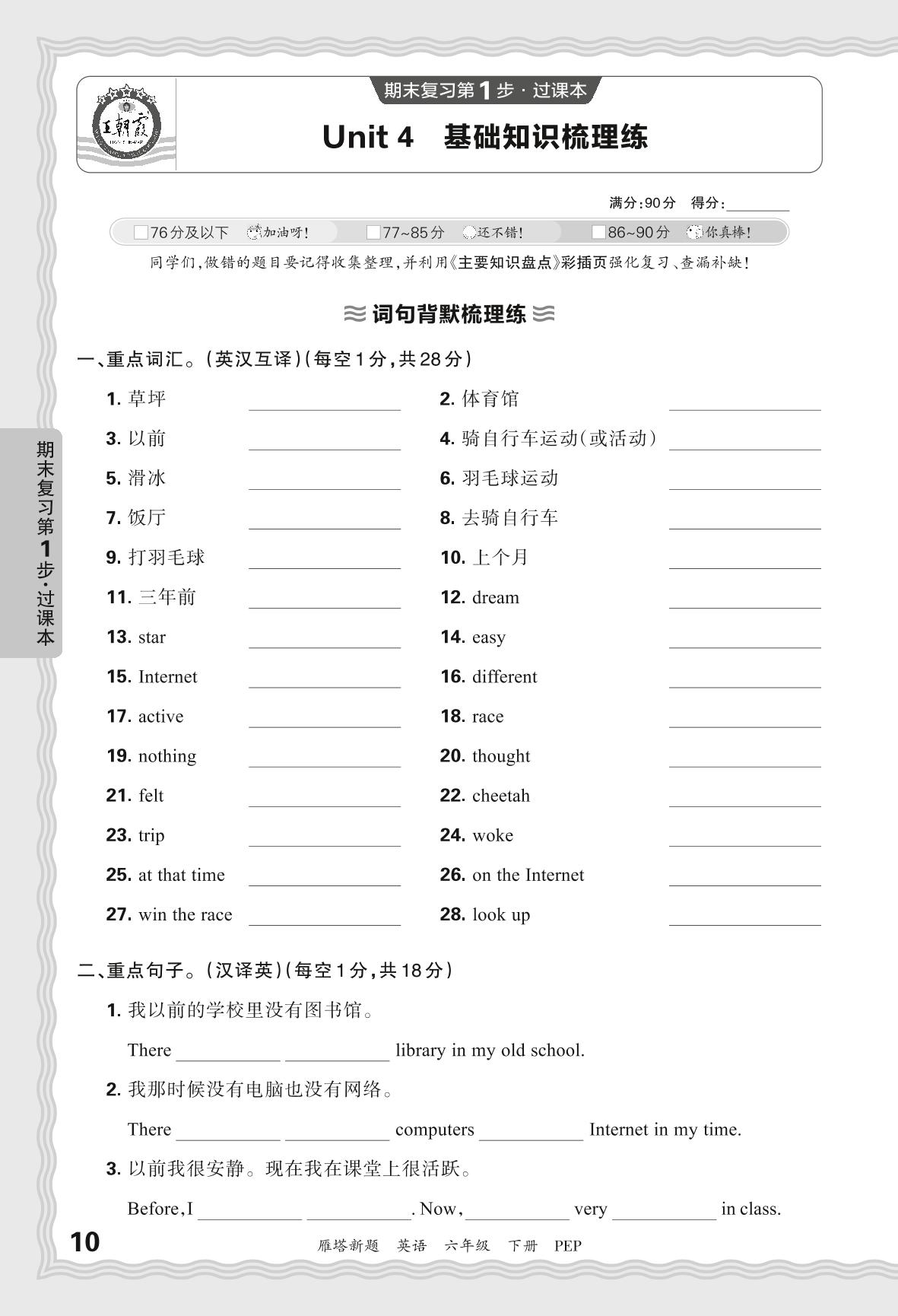 2024春下册六年级英语人教PEP版 期末过课本西安版·Unit 4 基础知识梳理练