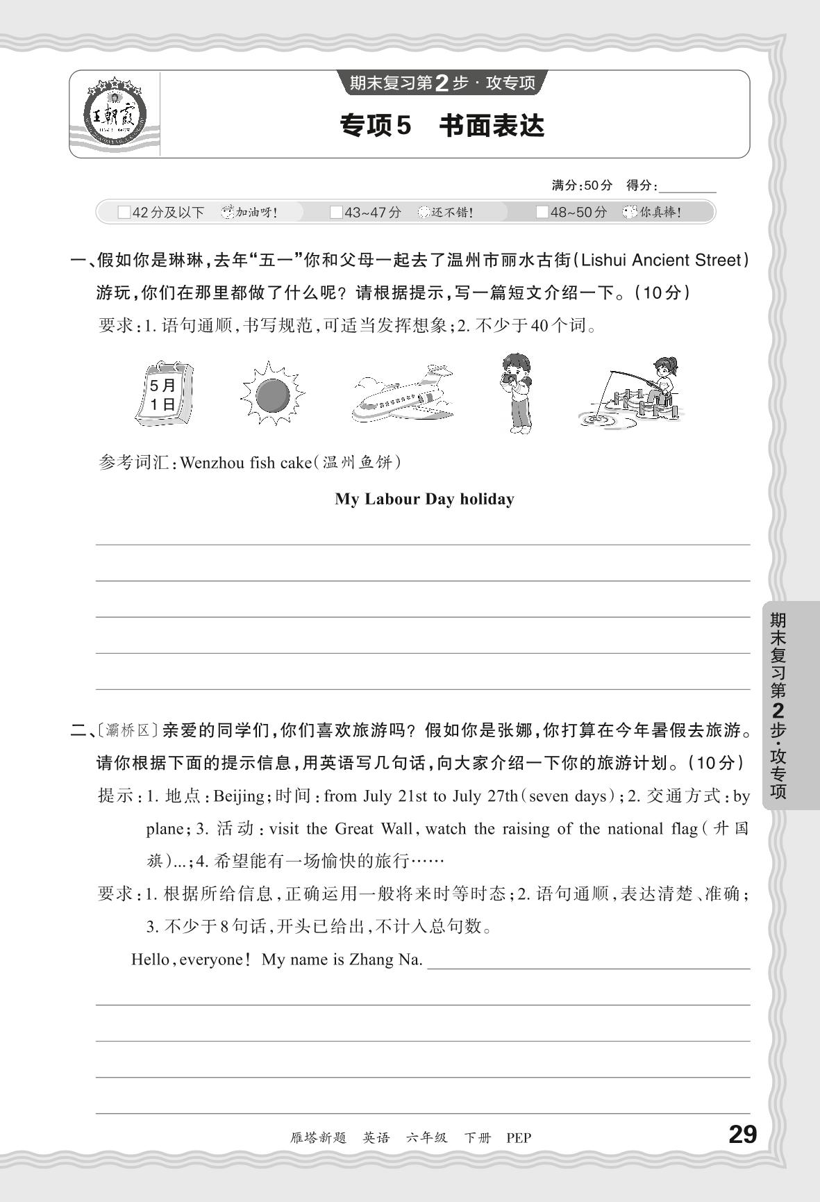 2024春下册六年级英语人教PEP版 期末专项卷西安版·书面表达【5】