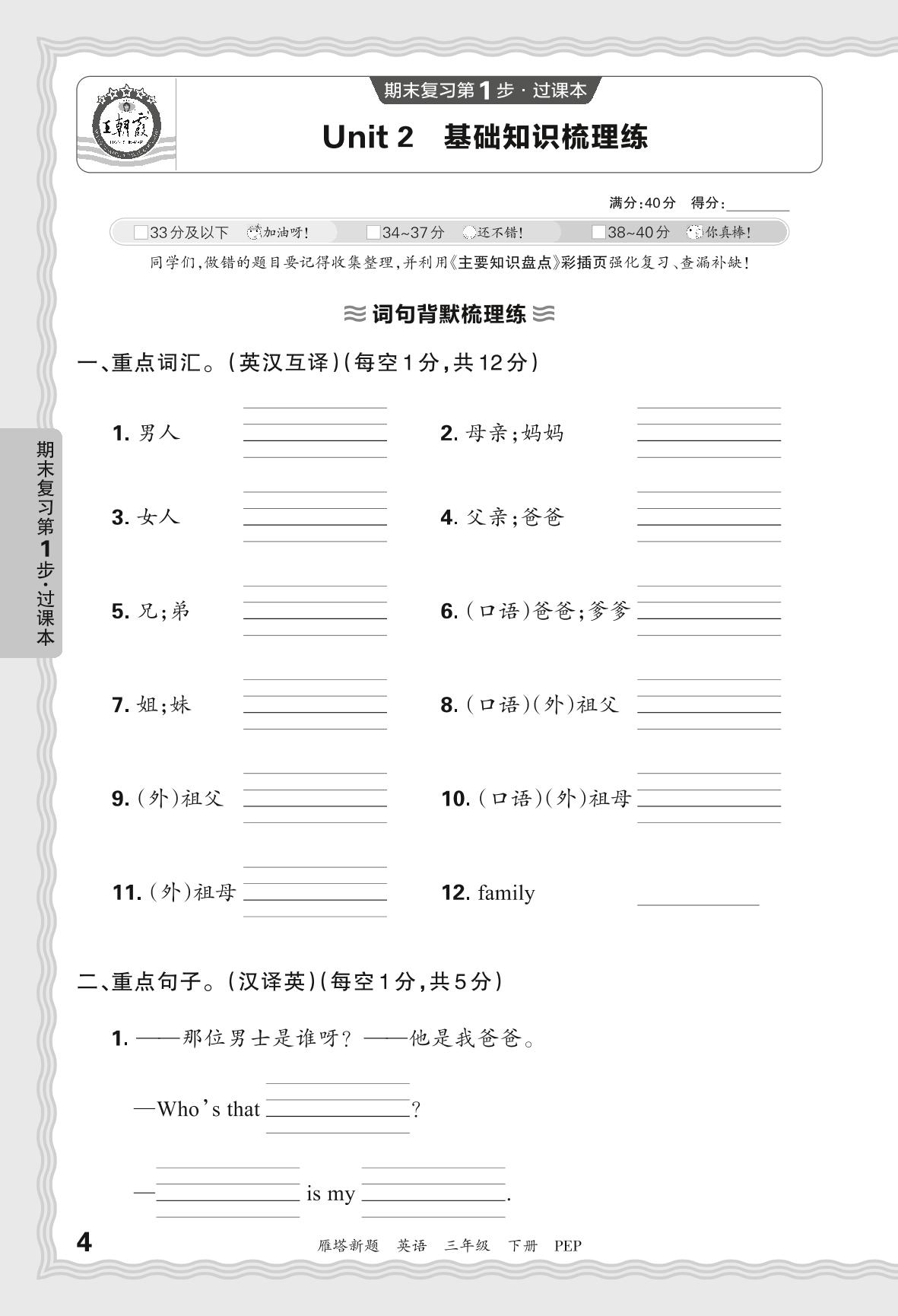 2024春下册三年级英语人教PEP版 期末过课本西安版·Unit 2 基础知识梳理练