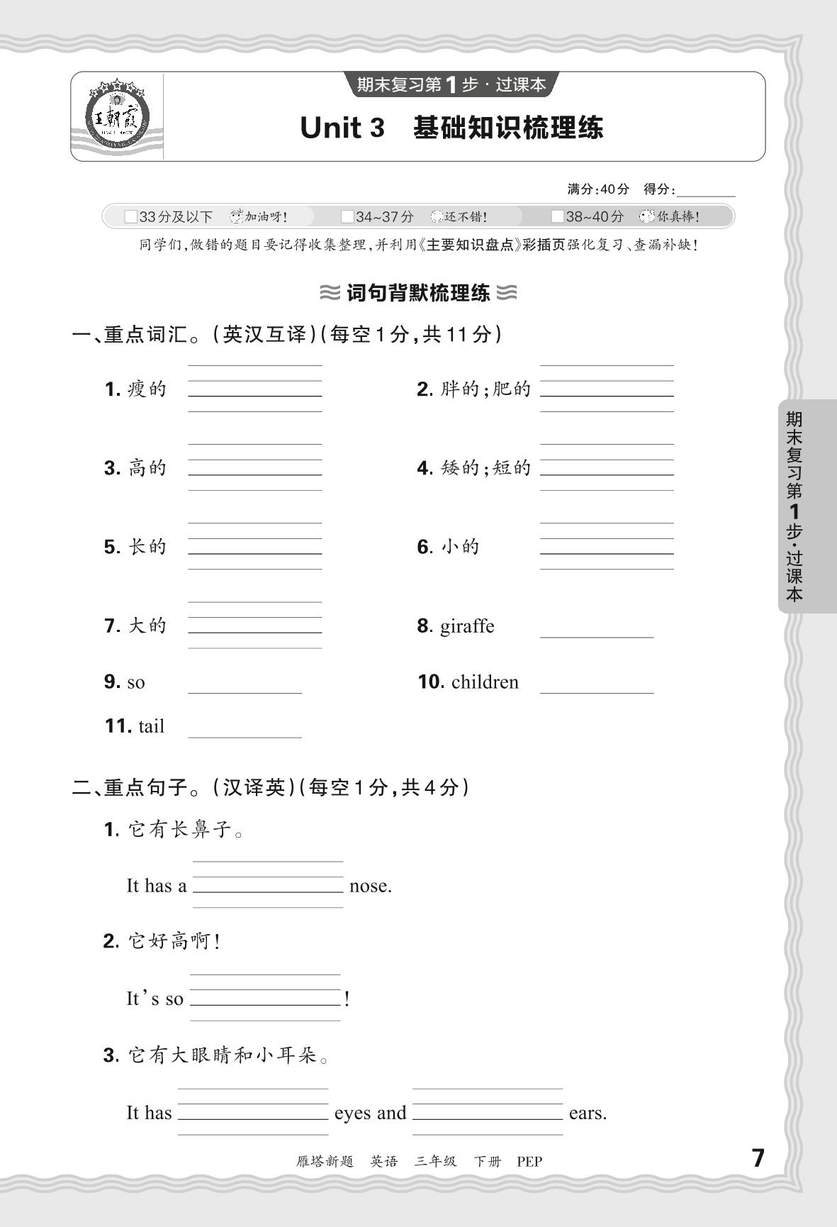 2024春下册三年级英语人教PEP版 期末过课本西安版·Unit 3 基础知识梳理练