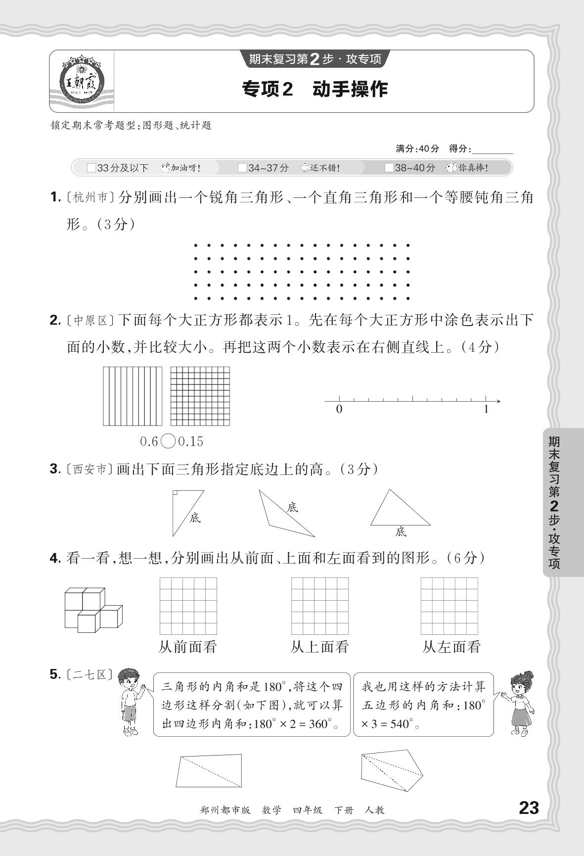 2024春下册四年级数学人教版 期末专项卷郑州版·动手操作【2】