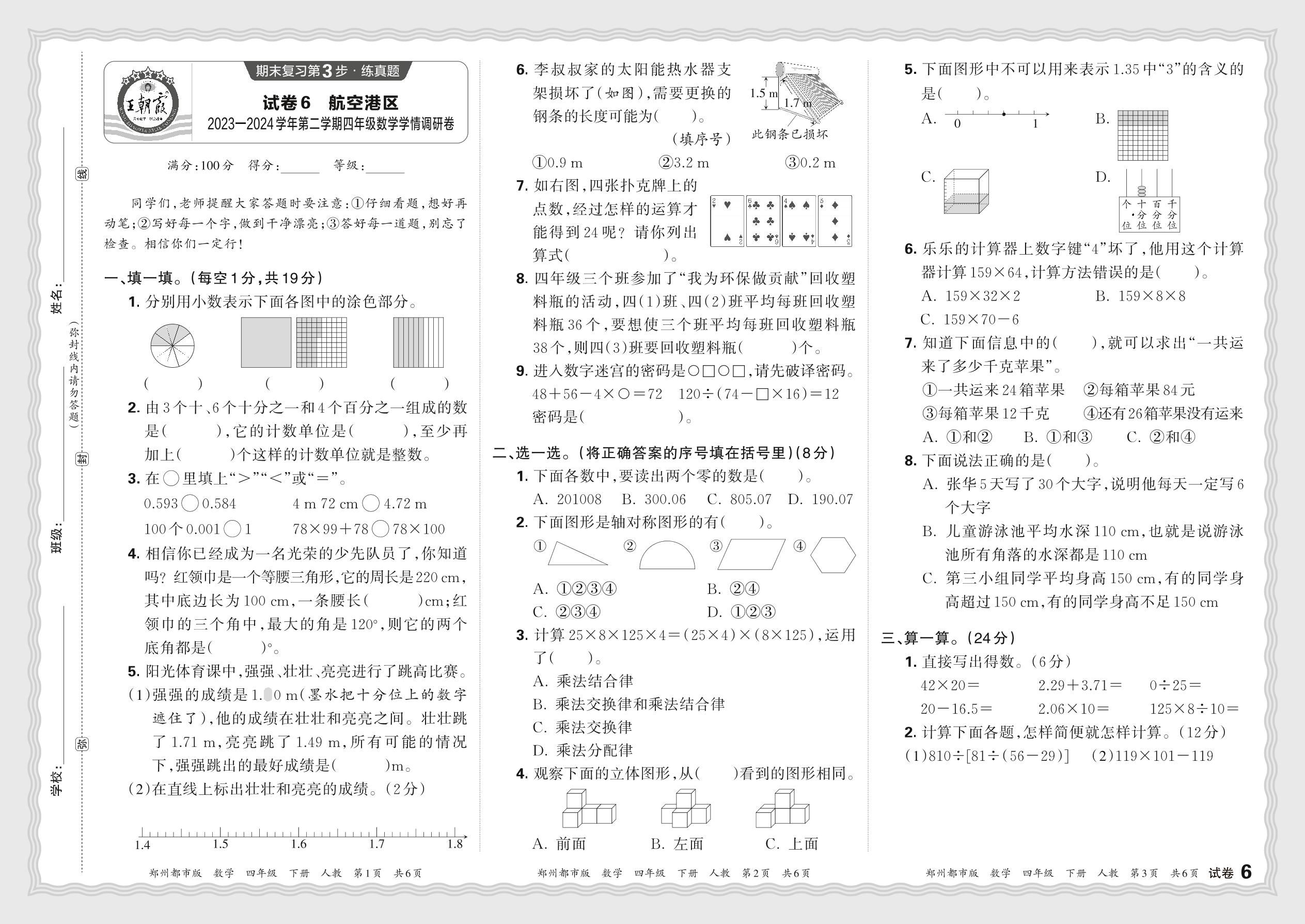 河南省郑州市航空港区2023—2024学年第二学期四年级数学学情调研卷(人教版)【6】