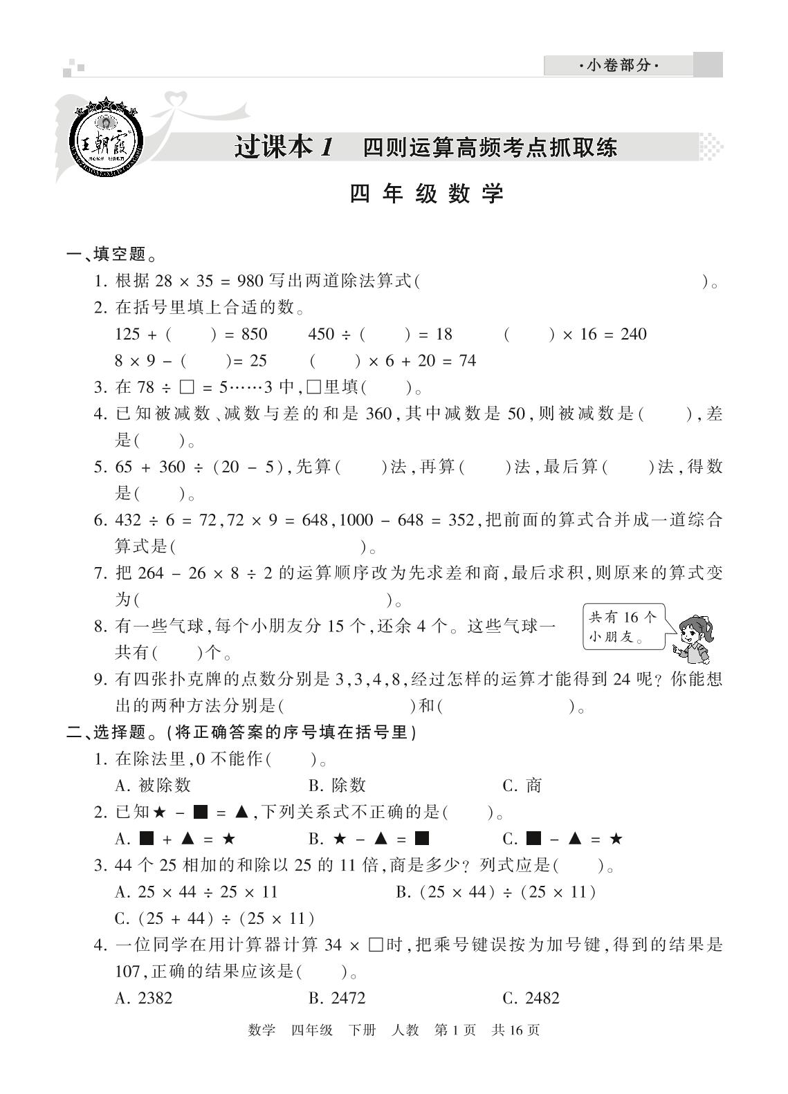 王朝霞期末过课本四年级下册数学(人教版)_R210804142133【0】