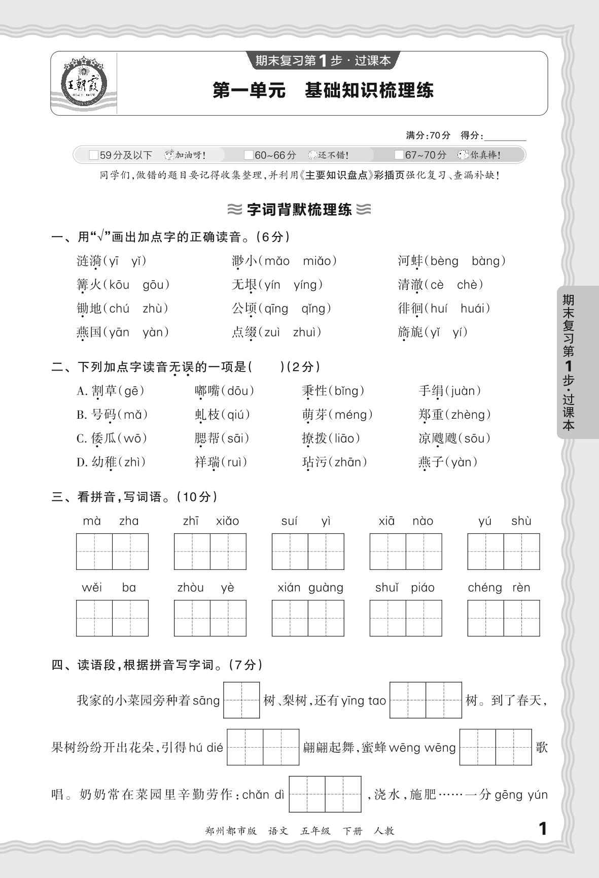 2024春下册五年级语文人教版 期末过课本郑州版·第一单元 基础知识梳理练