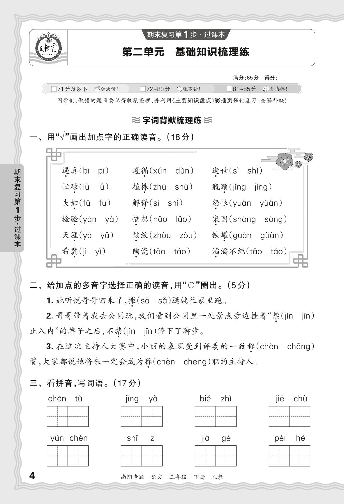2024春下册三年级语文人教版 期末过课本南阳版·第二单元 基础知识梳理练