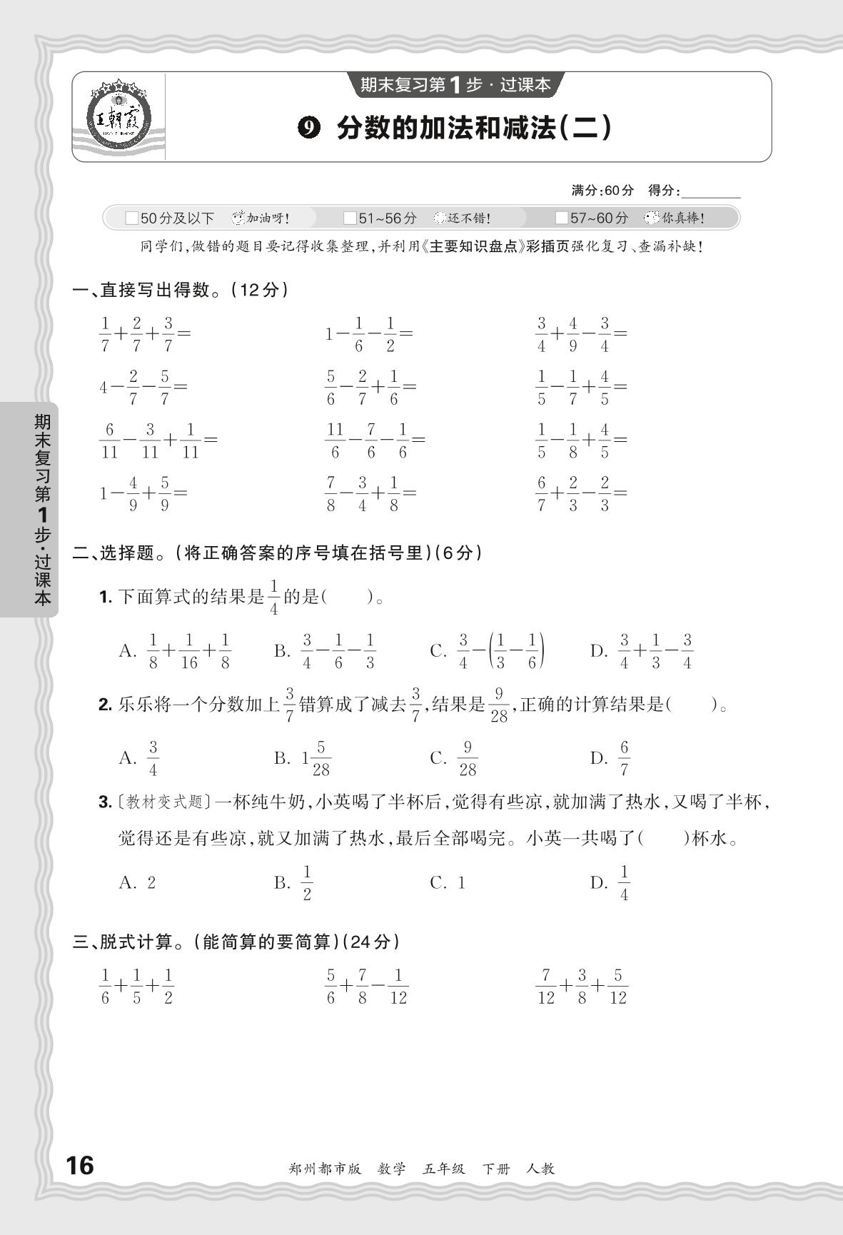 2024春下册五年级数学人教版 期末过课本郑州版·分数的加法和减法(二)【9】