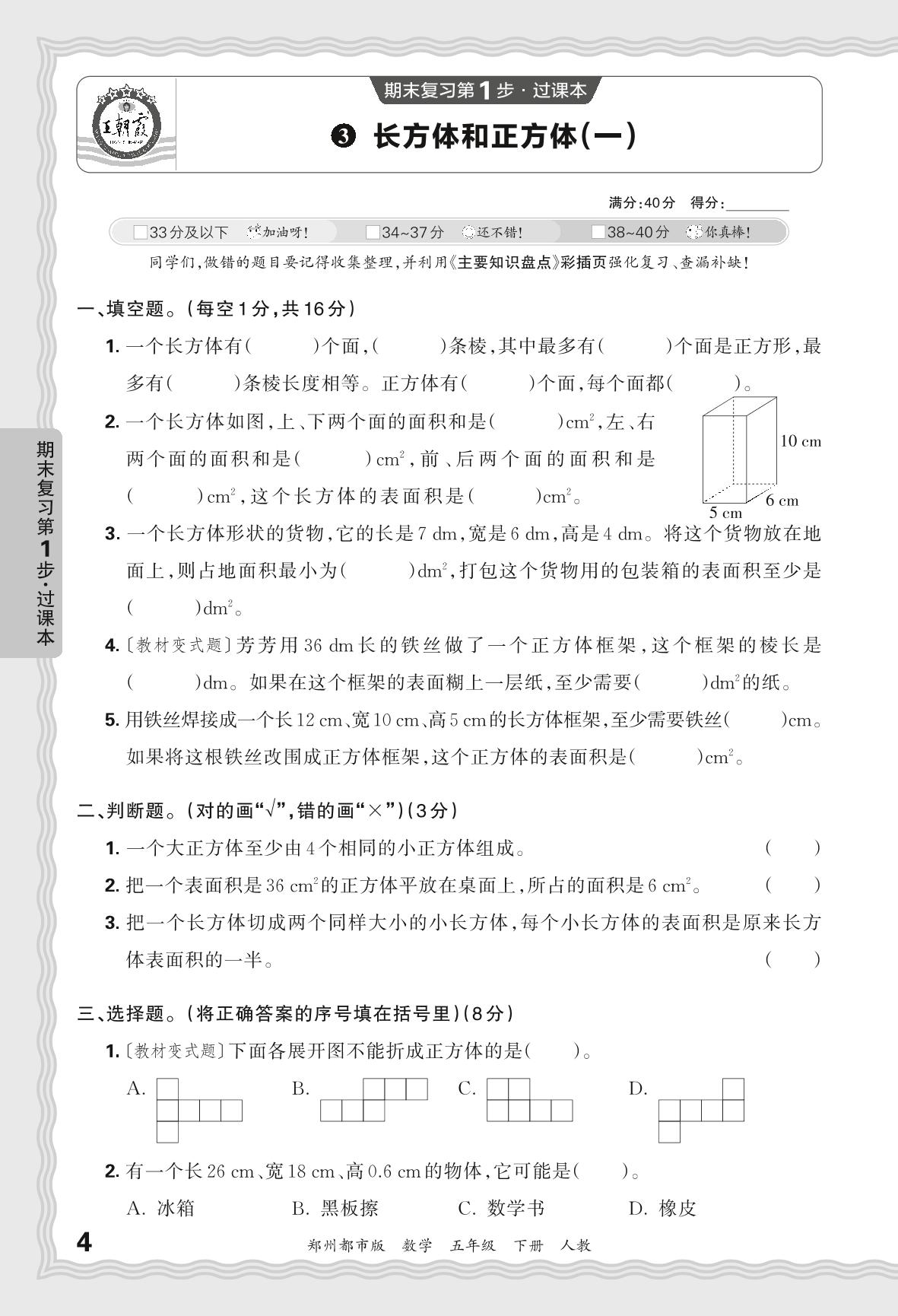 2024春下册五年级数学人教版 期末过课本郑州版·长方体和正方体(一)【3】