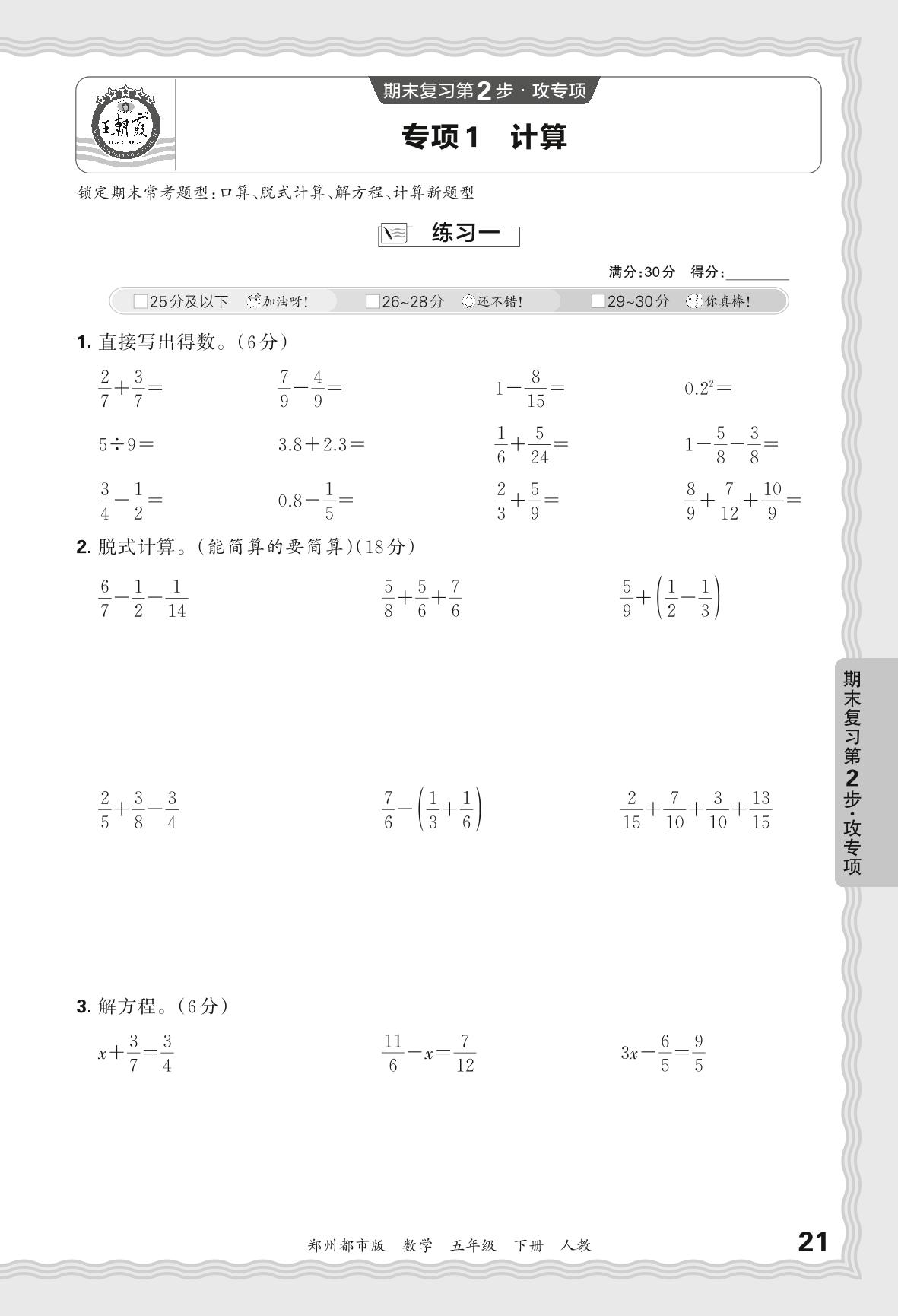 2024春下册五年级数学人教版 期末专项卷郑州版·计算【1】