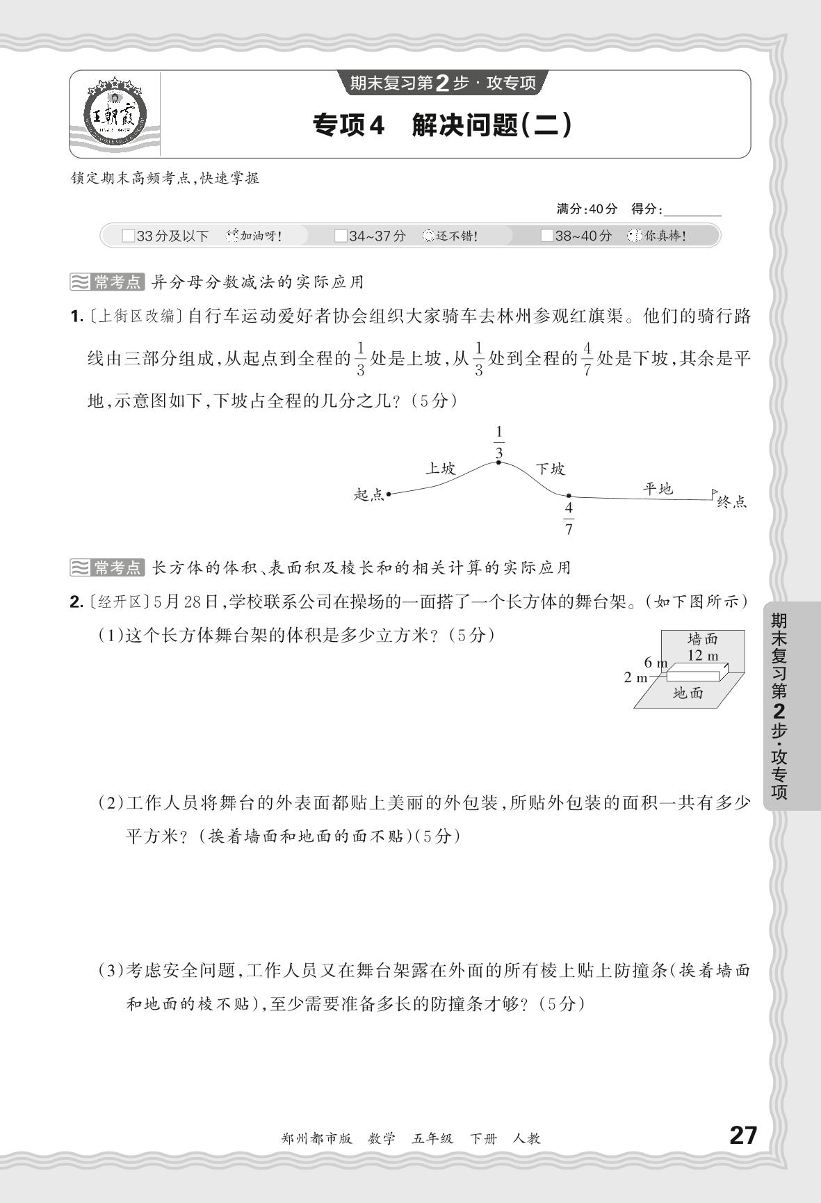 2024春下册五年级数学人教版 期末专项卷郑州版·解决问题(二)【4】