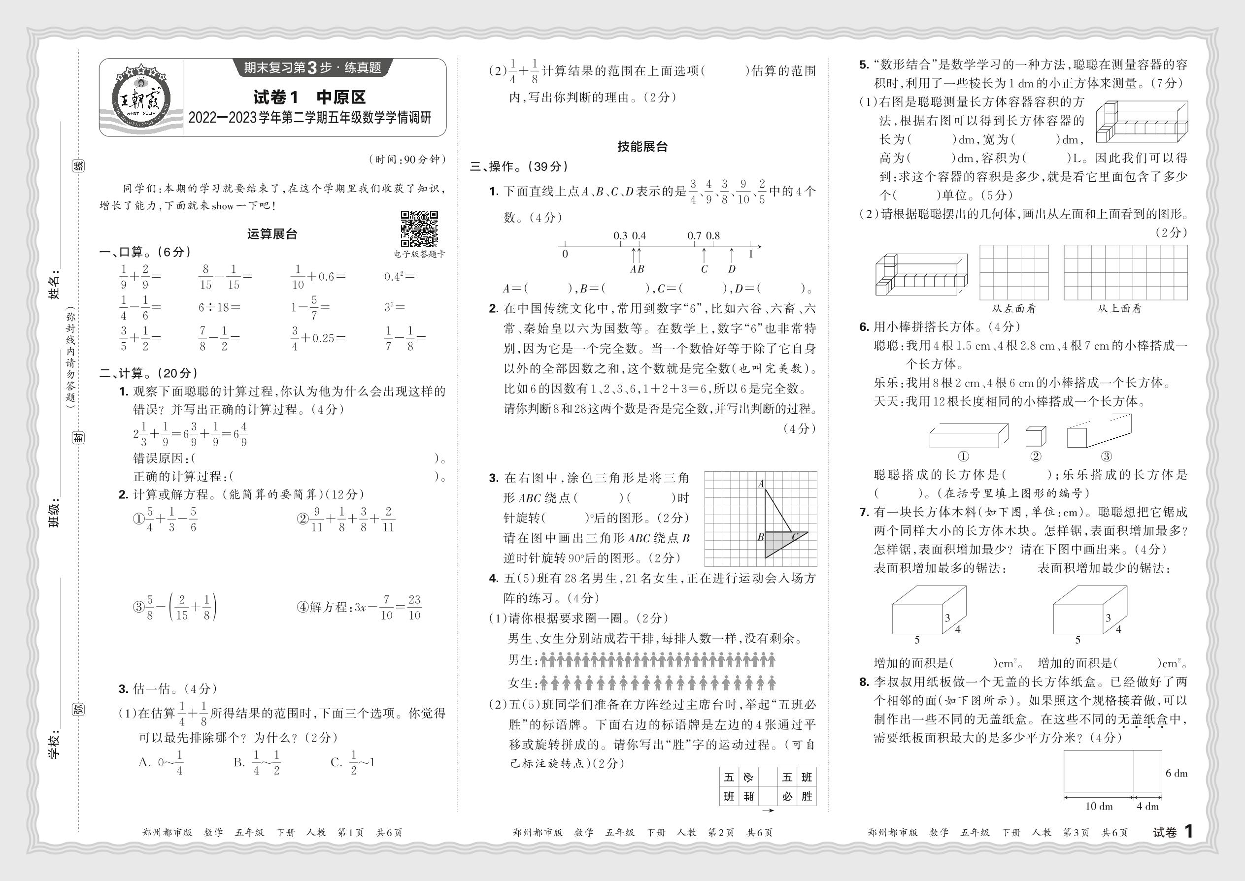河南省郑州市中原区2022—2023学年第二学期五年级数学学情调研(人教版)_R240423140935840【1】