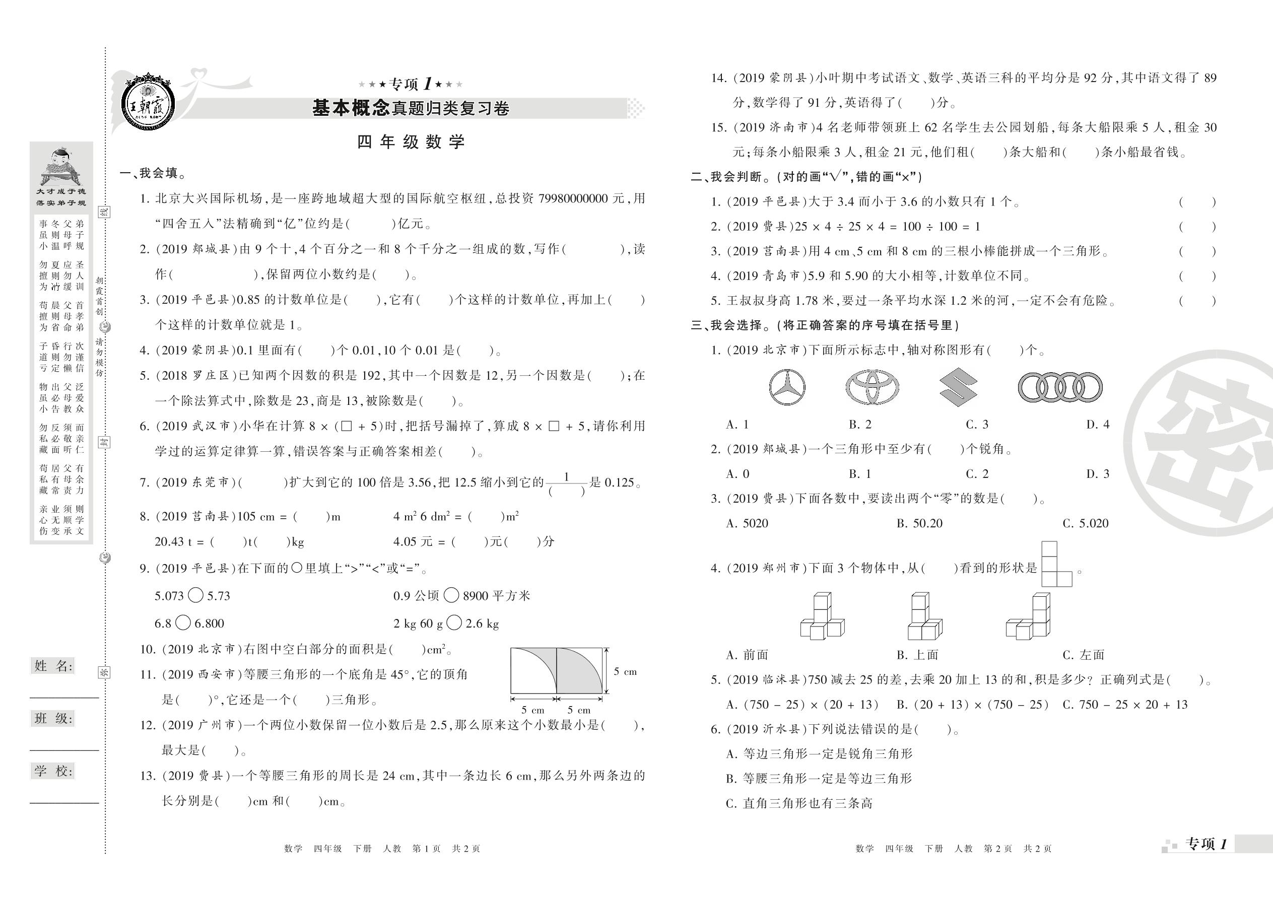 王朝霞期末专项卷——基本概念、计算真题归类复习卷四年级下册数学(人教版)_R210804142232【0】