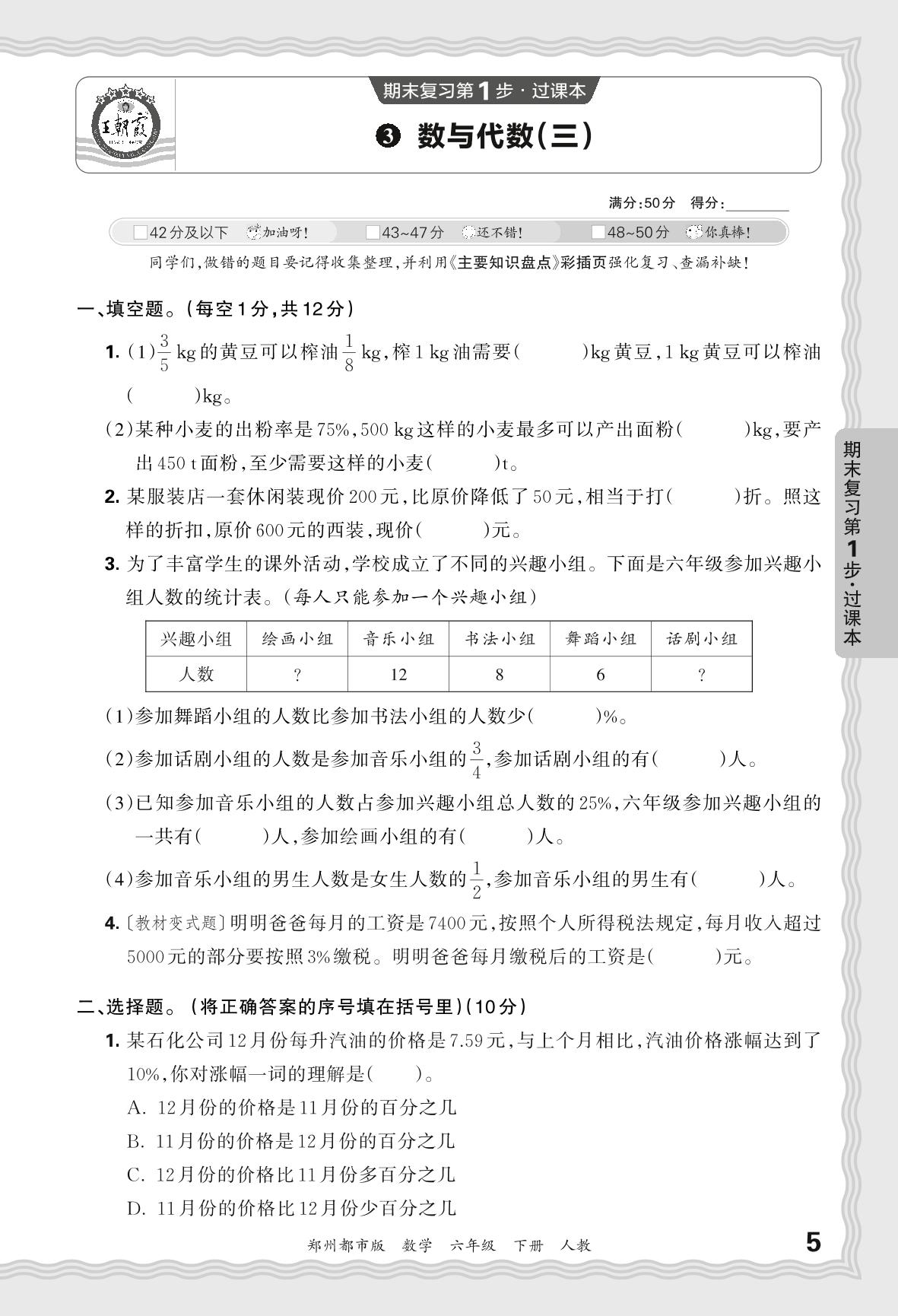 2024春下册六年级数学人教版 期末过课本郑州版·数与代数(三)【3】