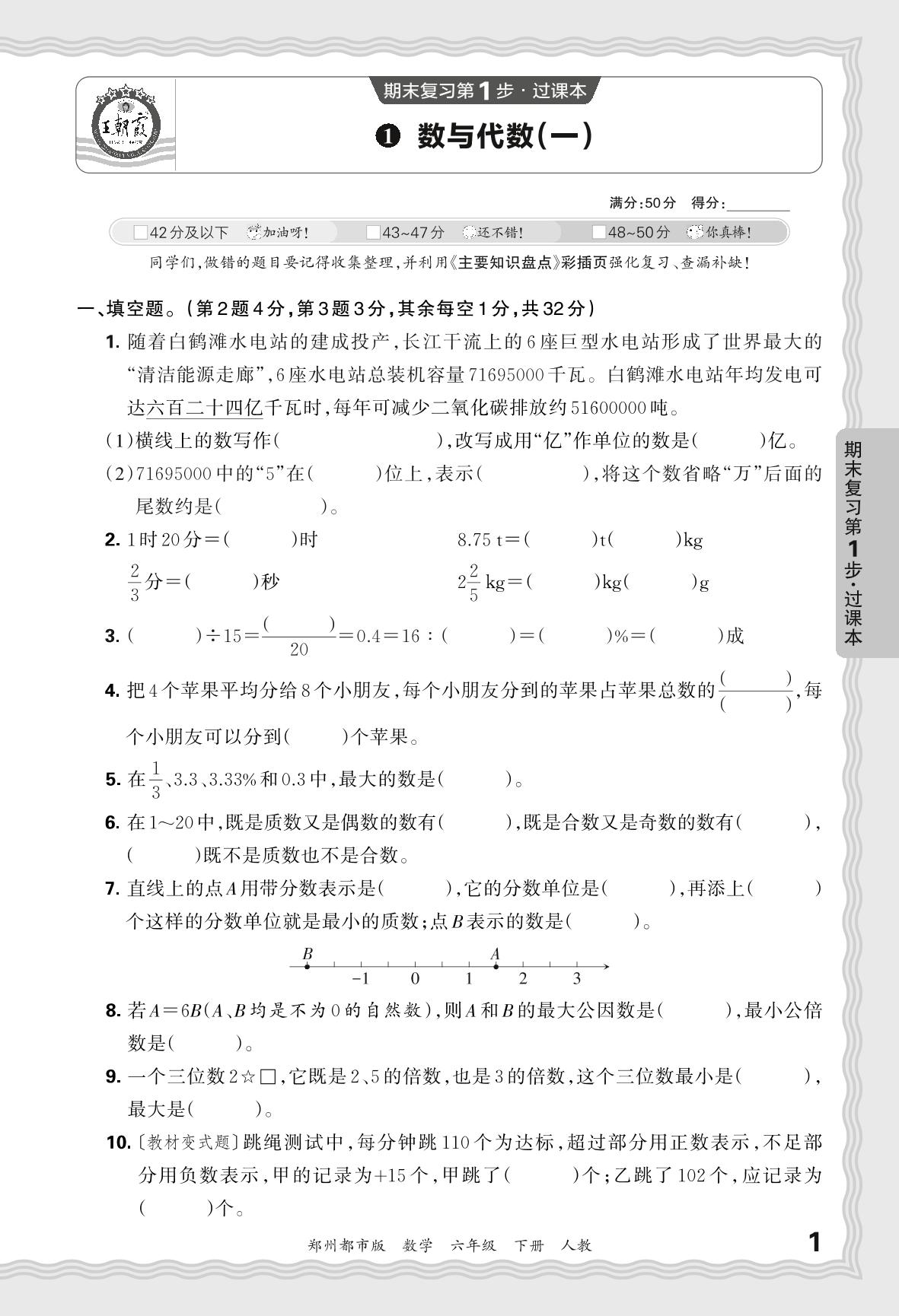 2024春下册六年级数学人教版 期末过课本郑州版·数与代数(一)【1】