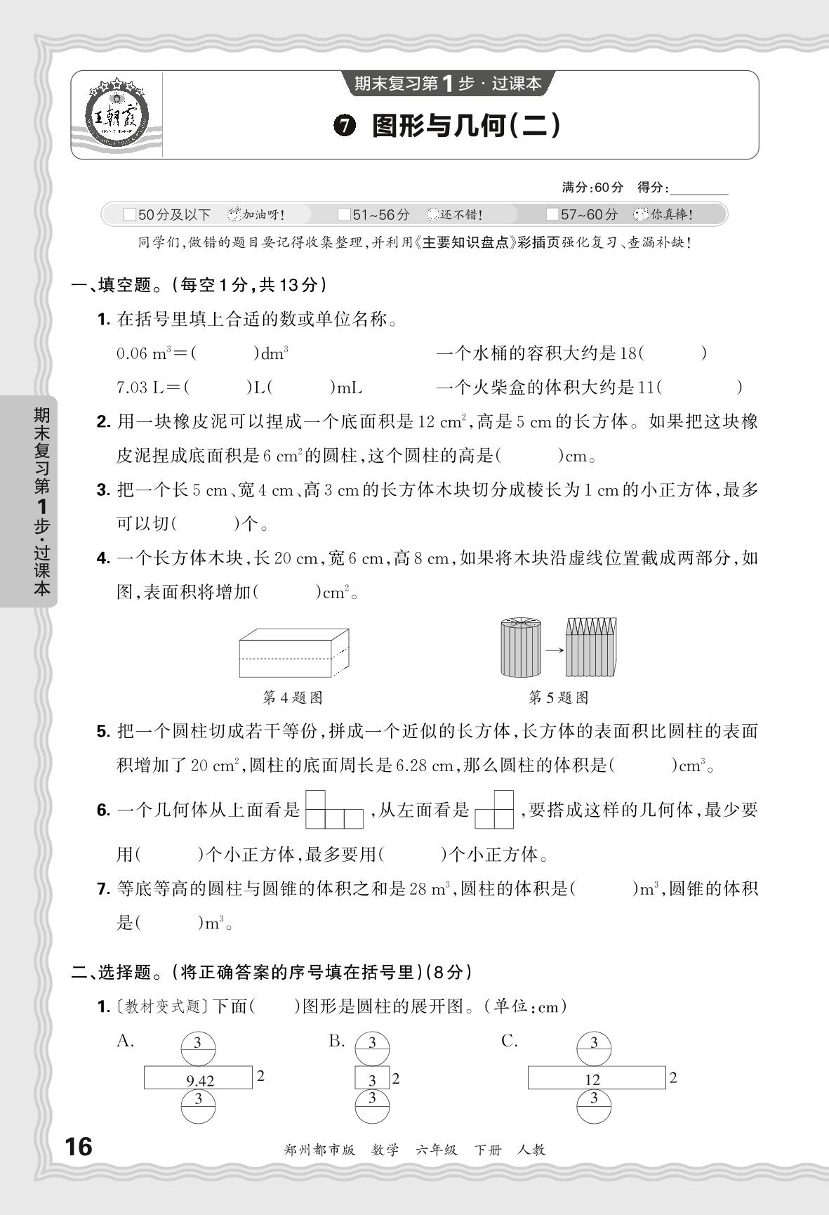 2024春下册六年级数学人教版 期末过课本郑州版·图形与几何(二)【7】