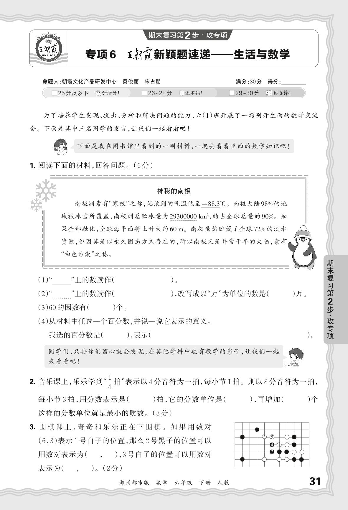 2024春下册六年级数学人教版 期末专项卷郑州版·王朝霞新颖题速递——生活与数学【6】