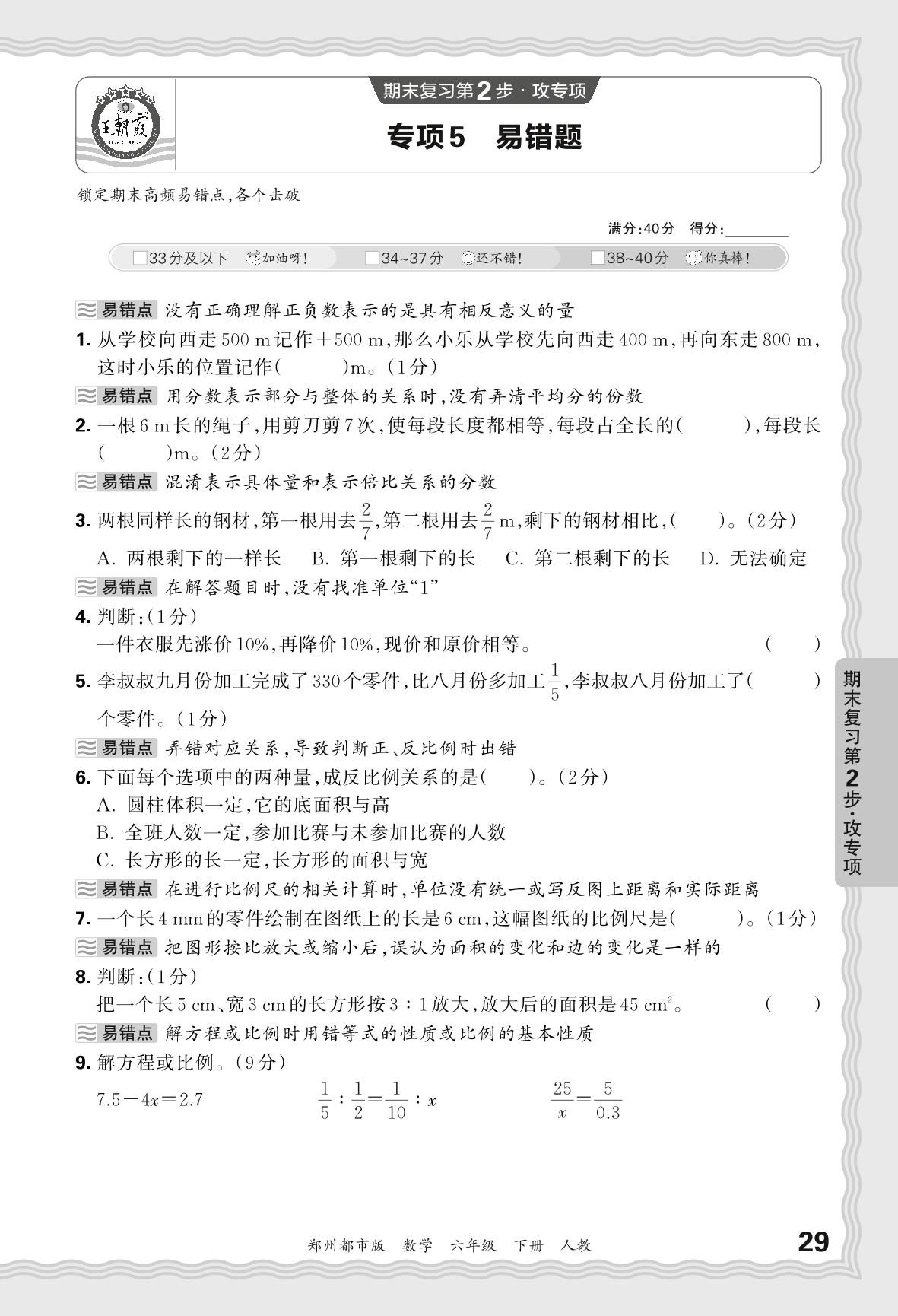 2024春下册六年级数学人教版 期末专项卷郑州版·易错题【5】