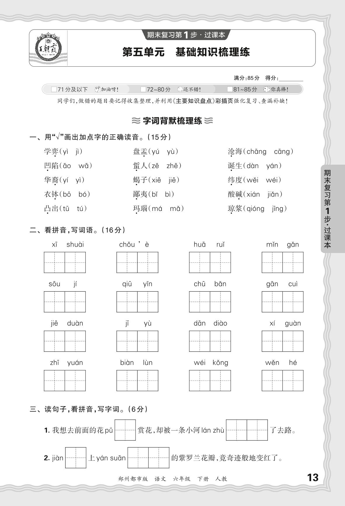 2024春下册六年级语文人教版 期末过课本郑州版·第五单元 基础知识梳理练