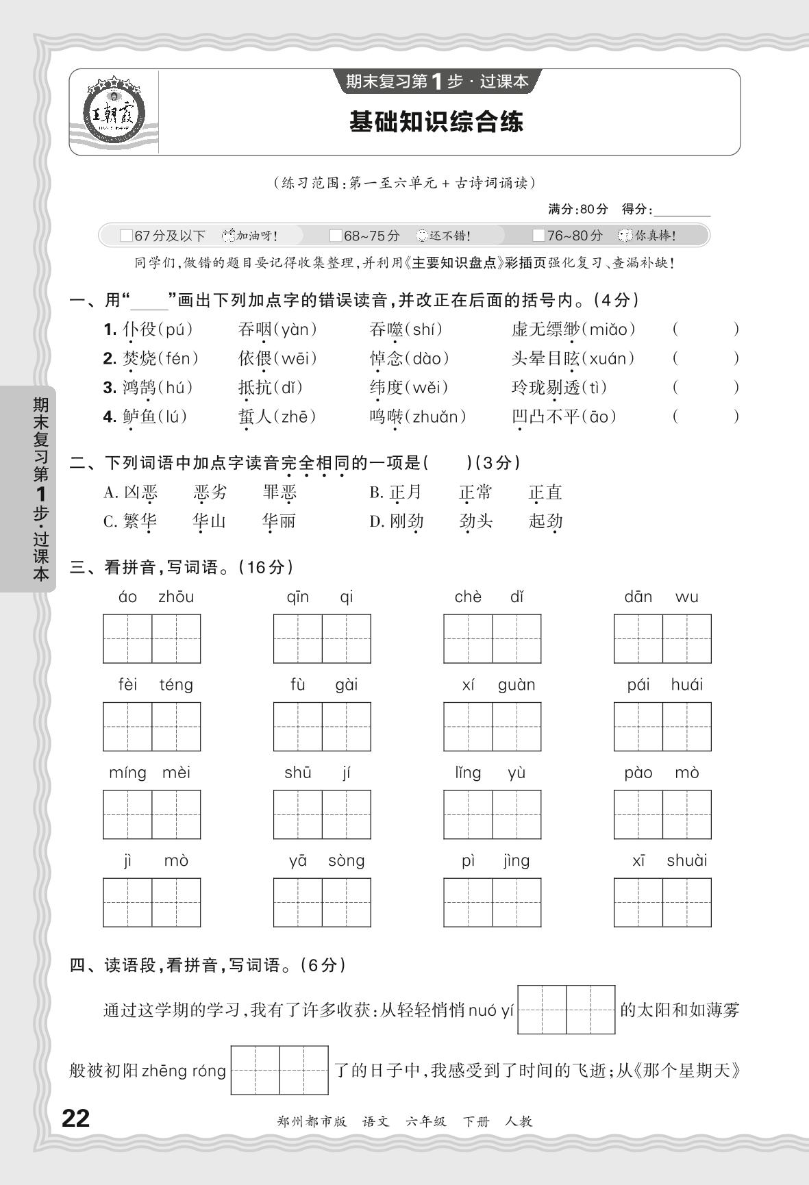 2024春下册六年级语文人教版 期末过课本郑州版·基础知识综合练