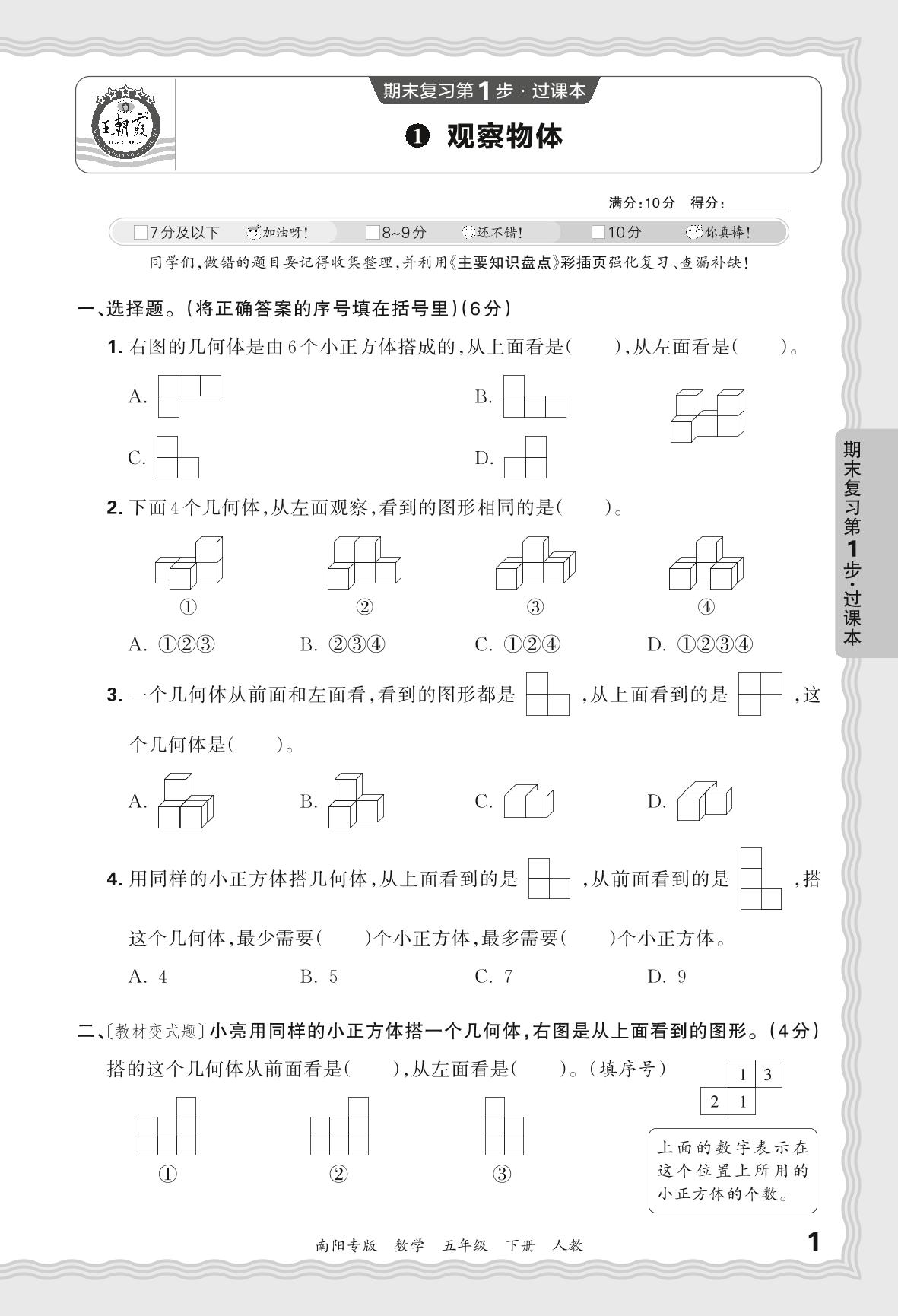 2024春下册五年级数学人教版 期末过课本南阳版·观察物体【1】