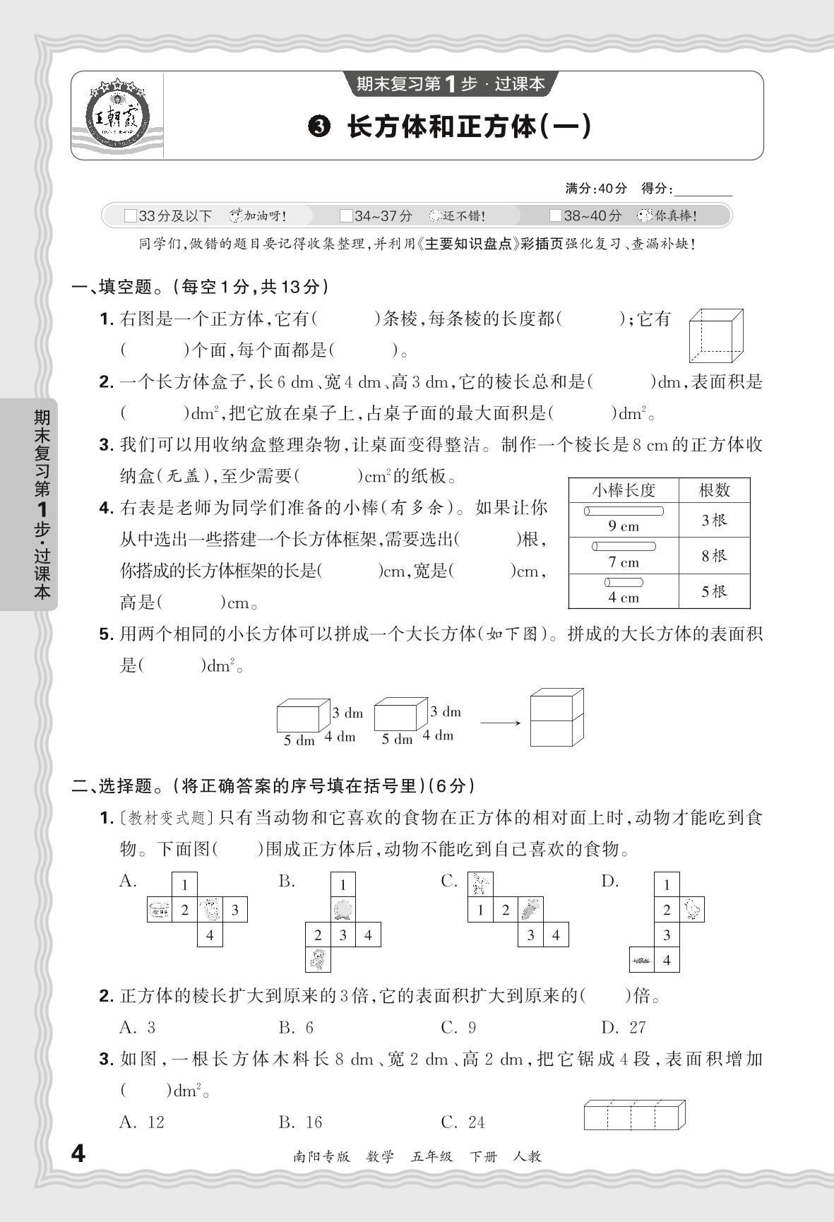 2024春下册五年级数学人教版 期末过课本南阳版·长方体和正方体(一)【3】
