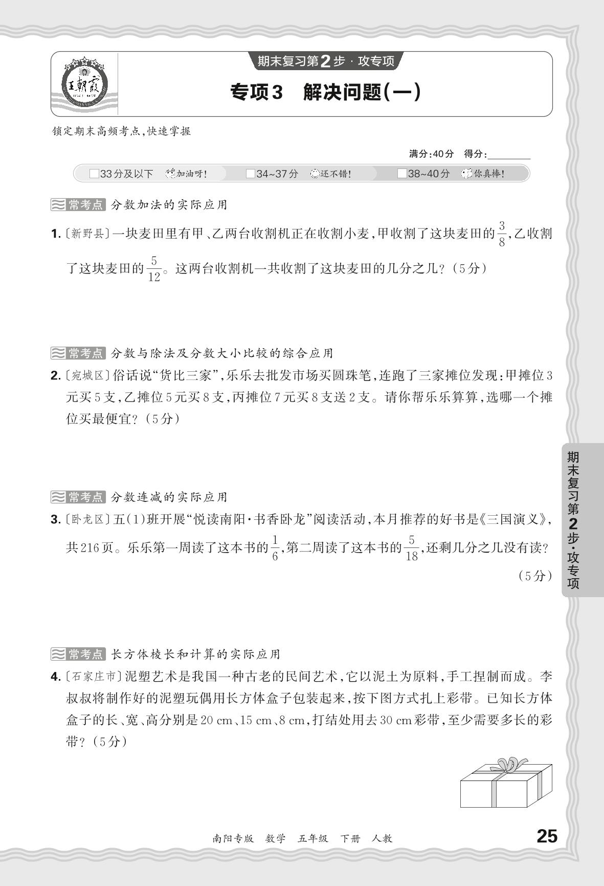 2024春下册五年级数学人教版 期末专项卷南阳版·解决问题(一)【3】