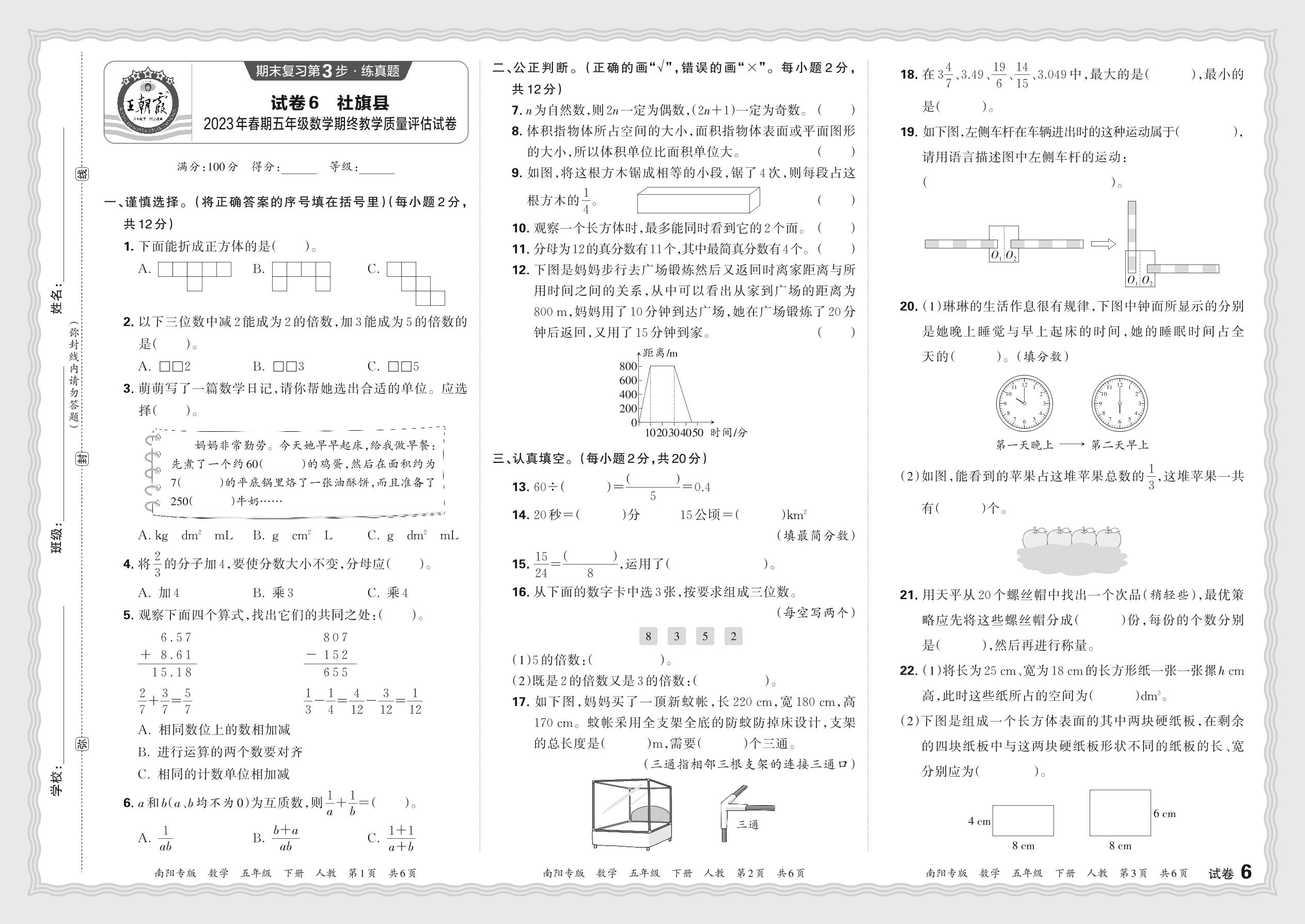 河南省南阳市社旗县2023年春期五年级数学期终教学质量评估试卷(人教版)【6】