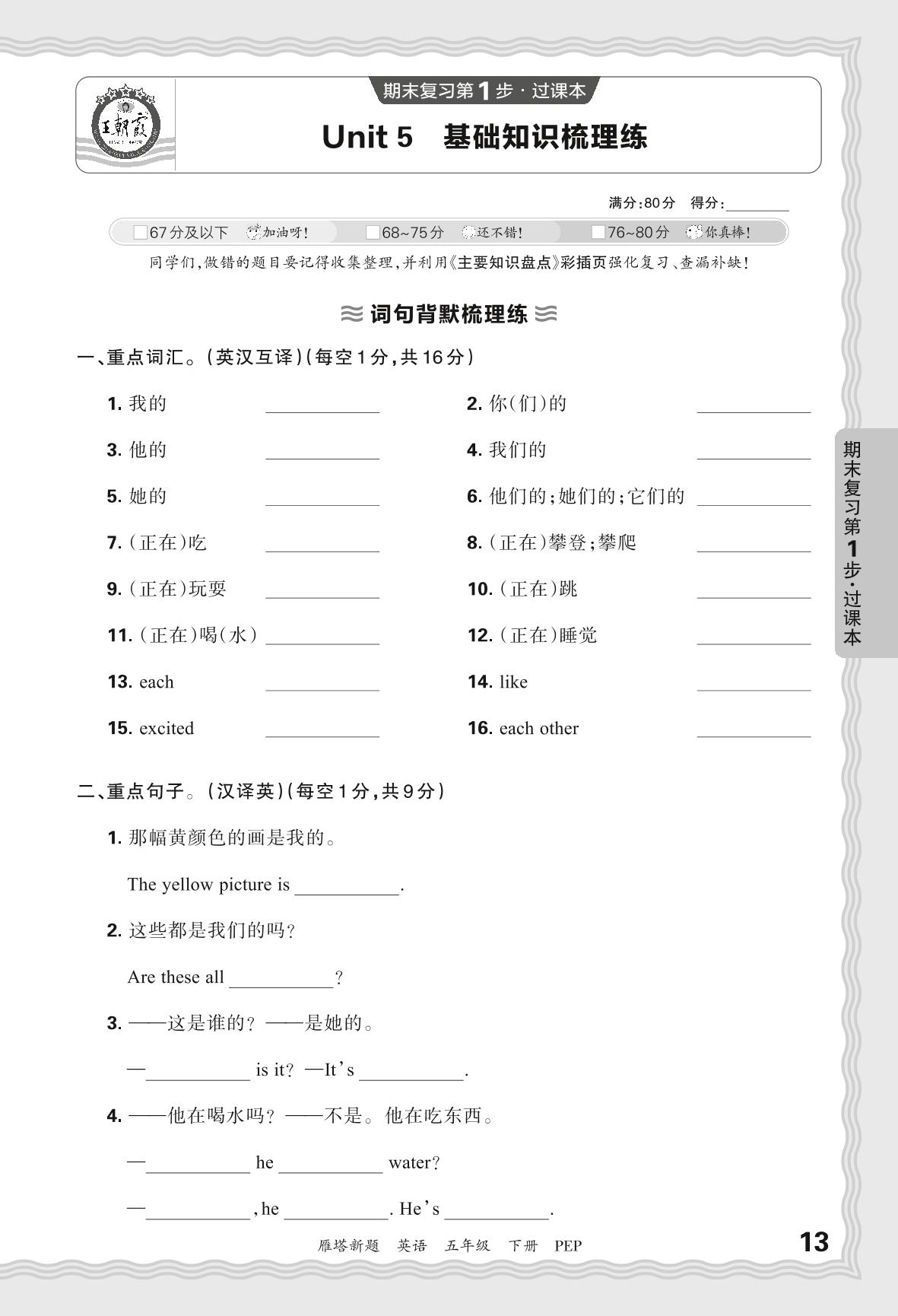 2024春下册五年级英语人教PEP版 期末过课本西安版·Unit 5 基础知识梳理练