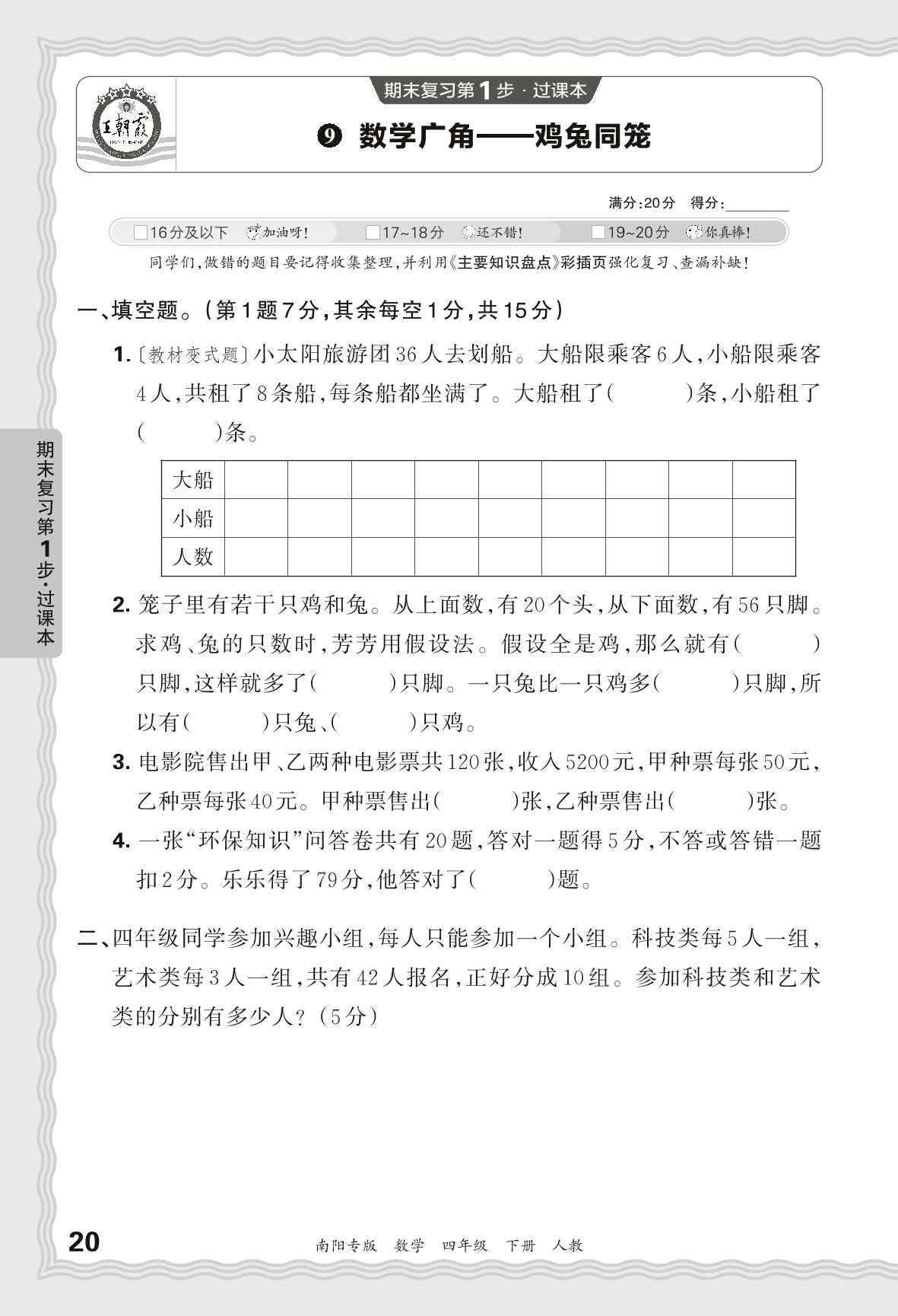 2024春下册四年级数学人教版 期末过课本南阳版·数学广角——鸡兔同笼【9】