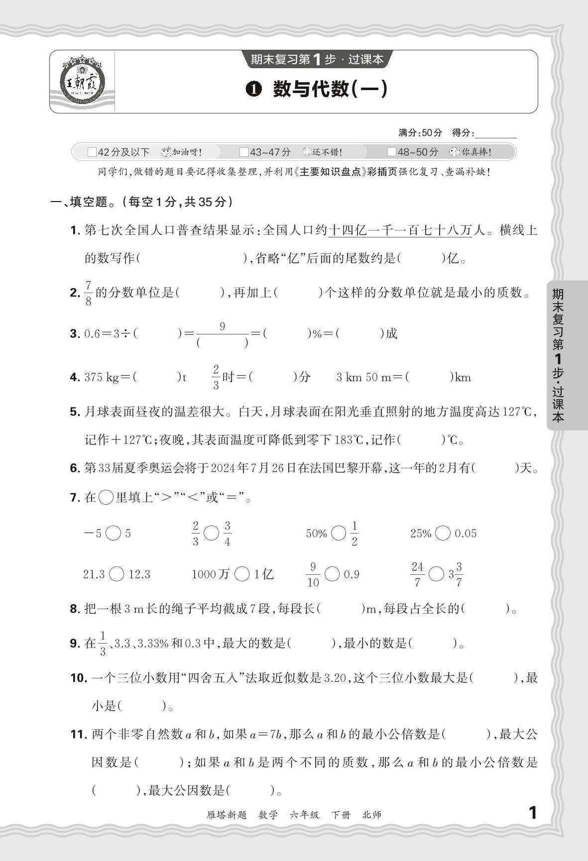 2024春下册六年级数学北师版 期末过课本西安版·数与代数(一)【1】