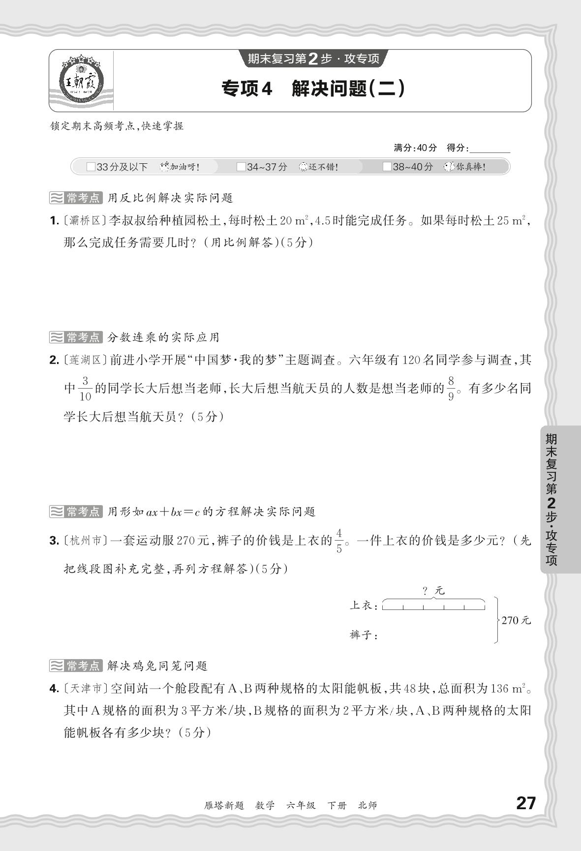 2024春下册六年级数学北师版 期末专项卷西安版·解决问题(二)【4】