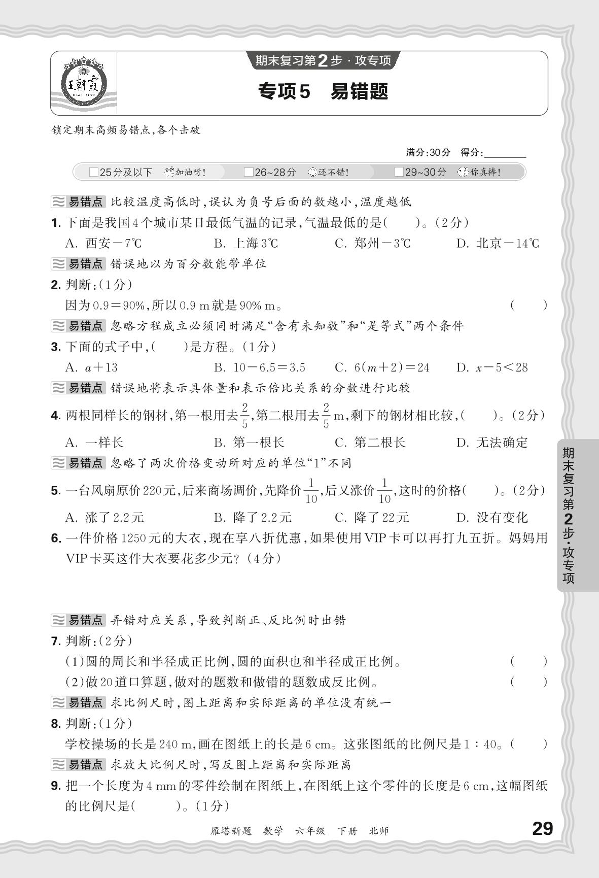 2024春下册六年级数学北师版 期末专项卷西安版·易错题【5】